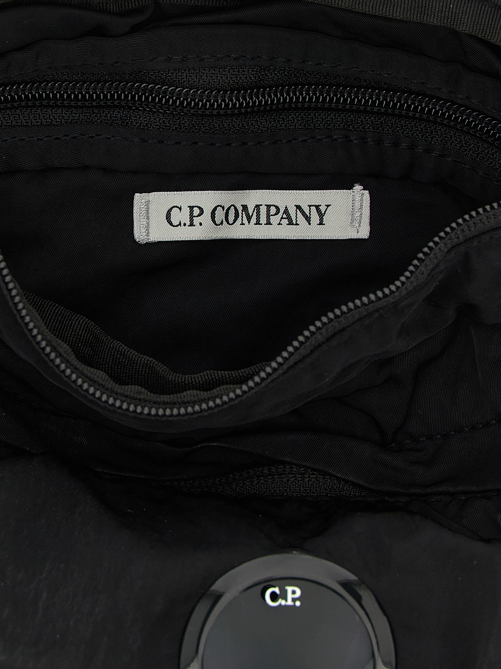 Garment-dyed Nylon B crossbody bag with anti-drip treatment, zip closure and top handle, front zip pocket and iconic ‘Lente’ by C.P. Company, adjustable shoulder strap with tuc closure.