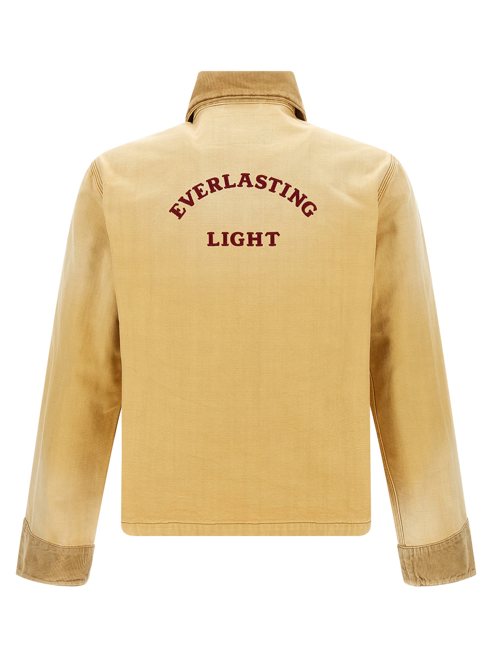 ‘Sierra’ Japanese cotton canvas jacket with tone-on-tone corduroy panels, unlined, back embroidery, shirt collar, front button closure, pockets, long sleeves with cuffs and slightly dropped shoulder.