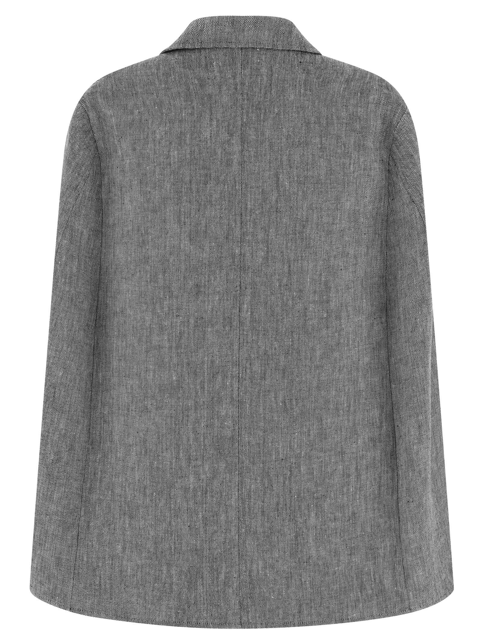 Single-breasted’ single-breasted melange linen cape with V-neck and peak lapels, front button closure, loose fit, patch pocket and front flap pockets.