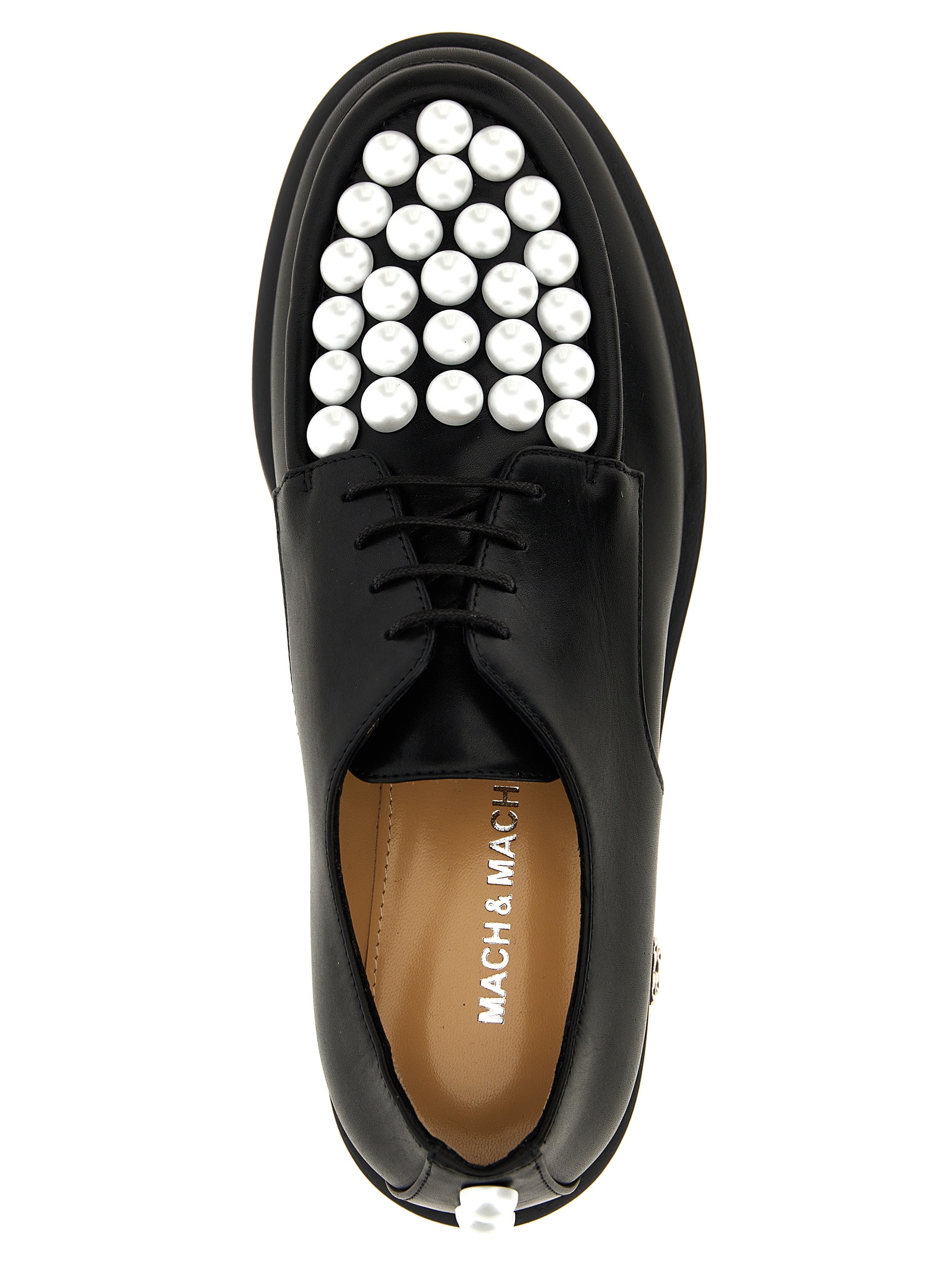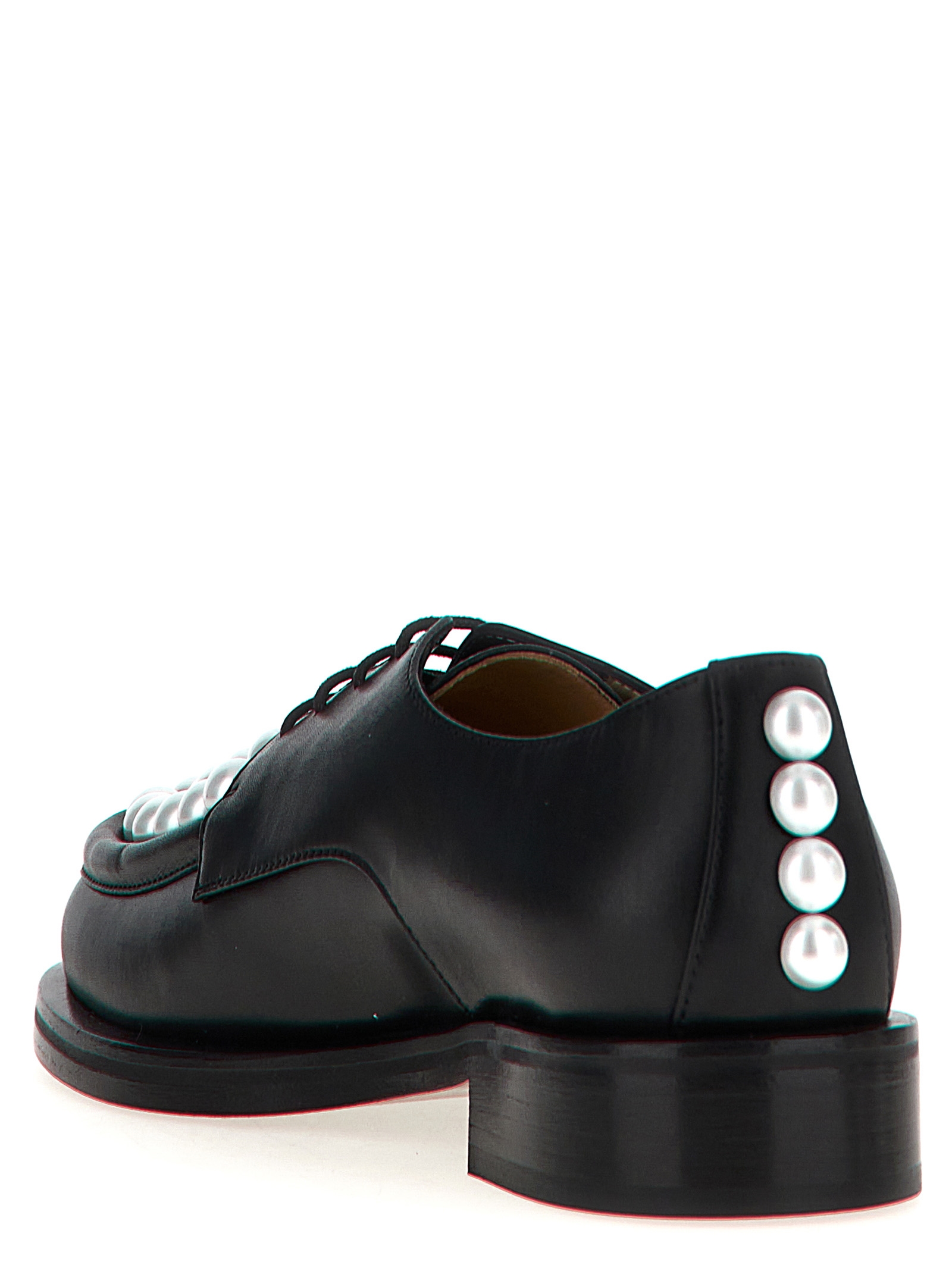 ‘Sirene’ leather lace-up shoes with contrast bead appliqué, laces and leather sole.