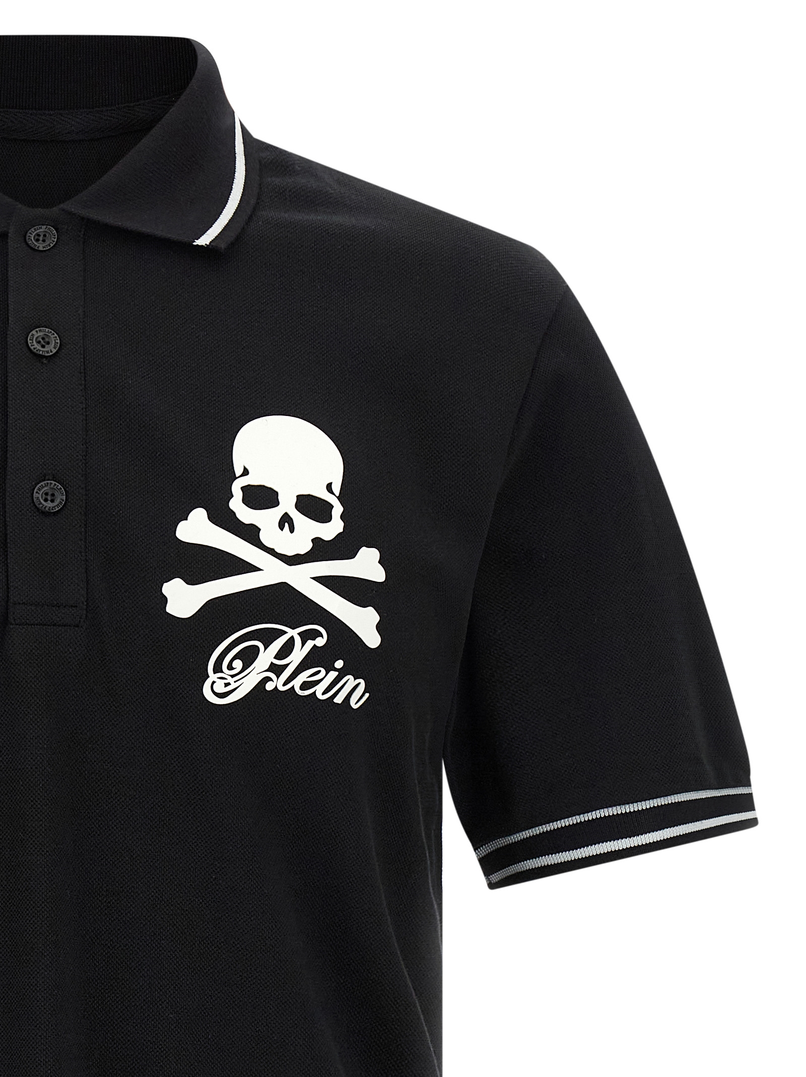 Piqué cotton polo shirt, front logo patch ‘Skull & Bones’ collar, 3 button closure, short sleeves.
