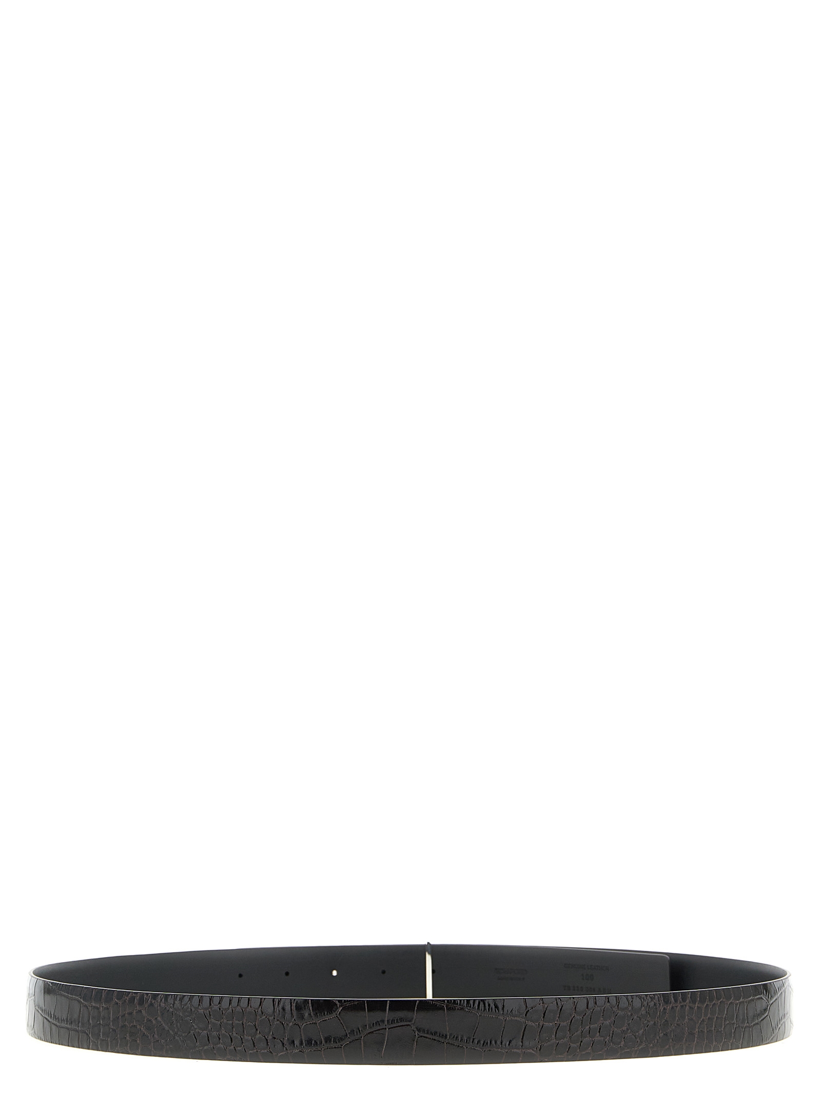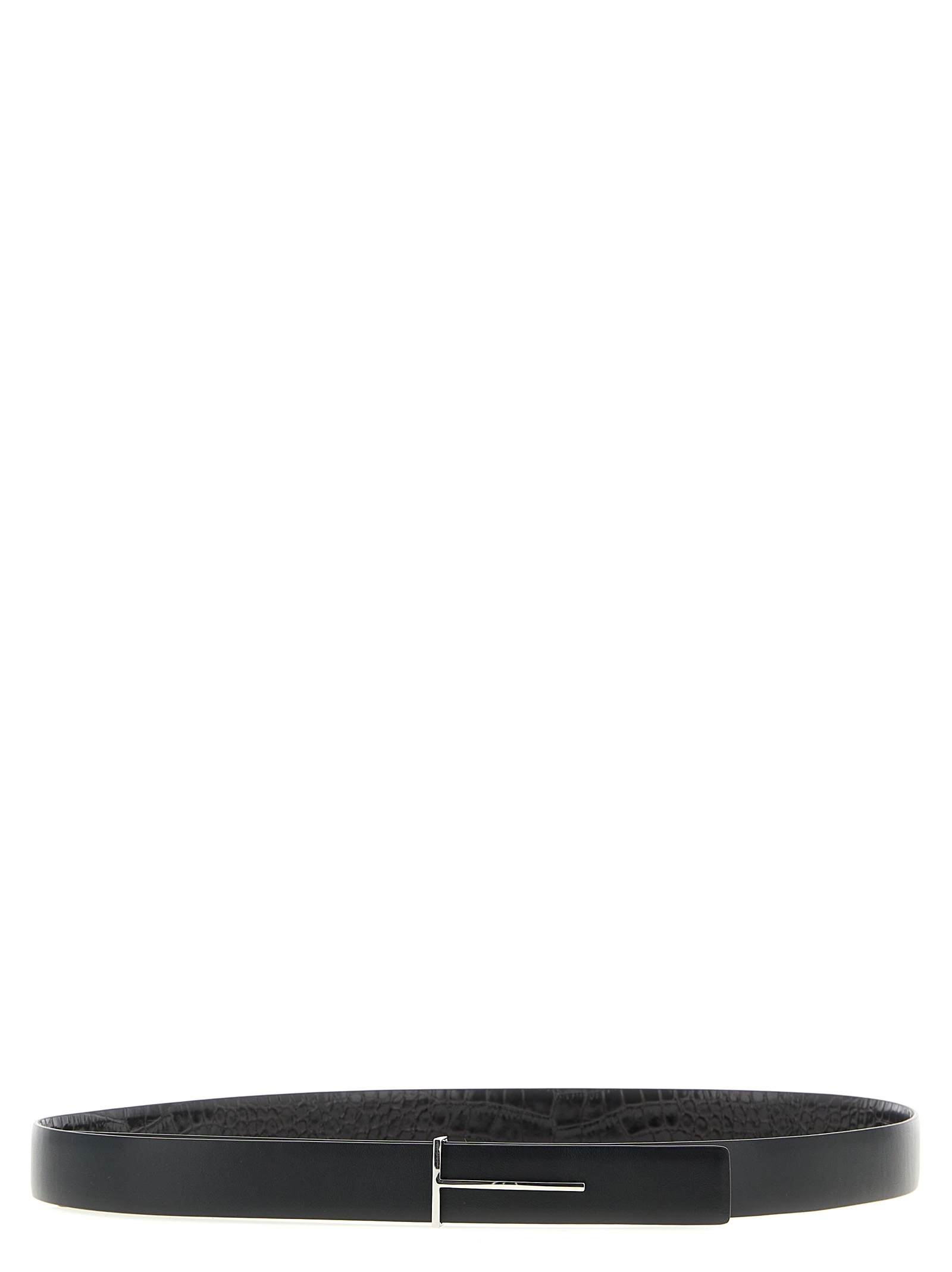 Reversible belt in glossy python print and matte smooth leather, metal ‘Slim T’ buckle.