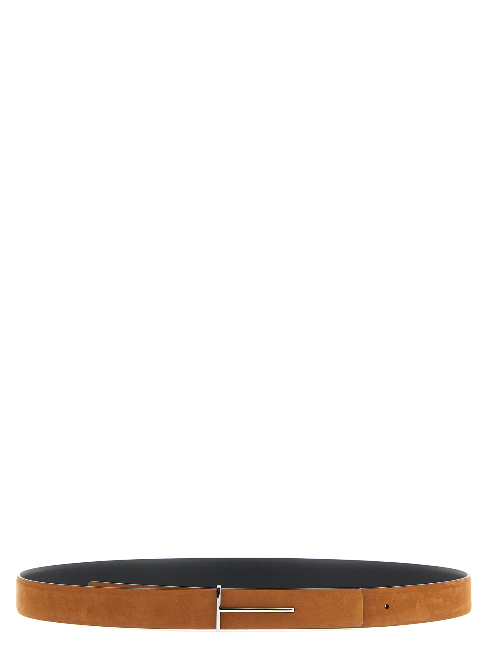 Reversible nubuck and smooth leather belt, metal ‘Slim T’ buckle.