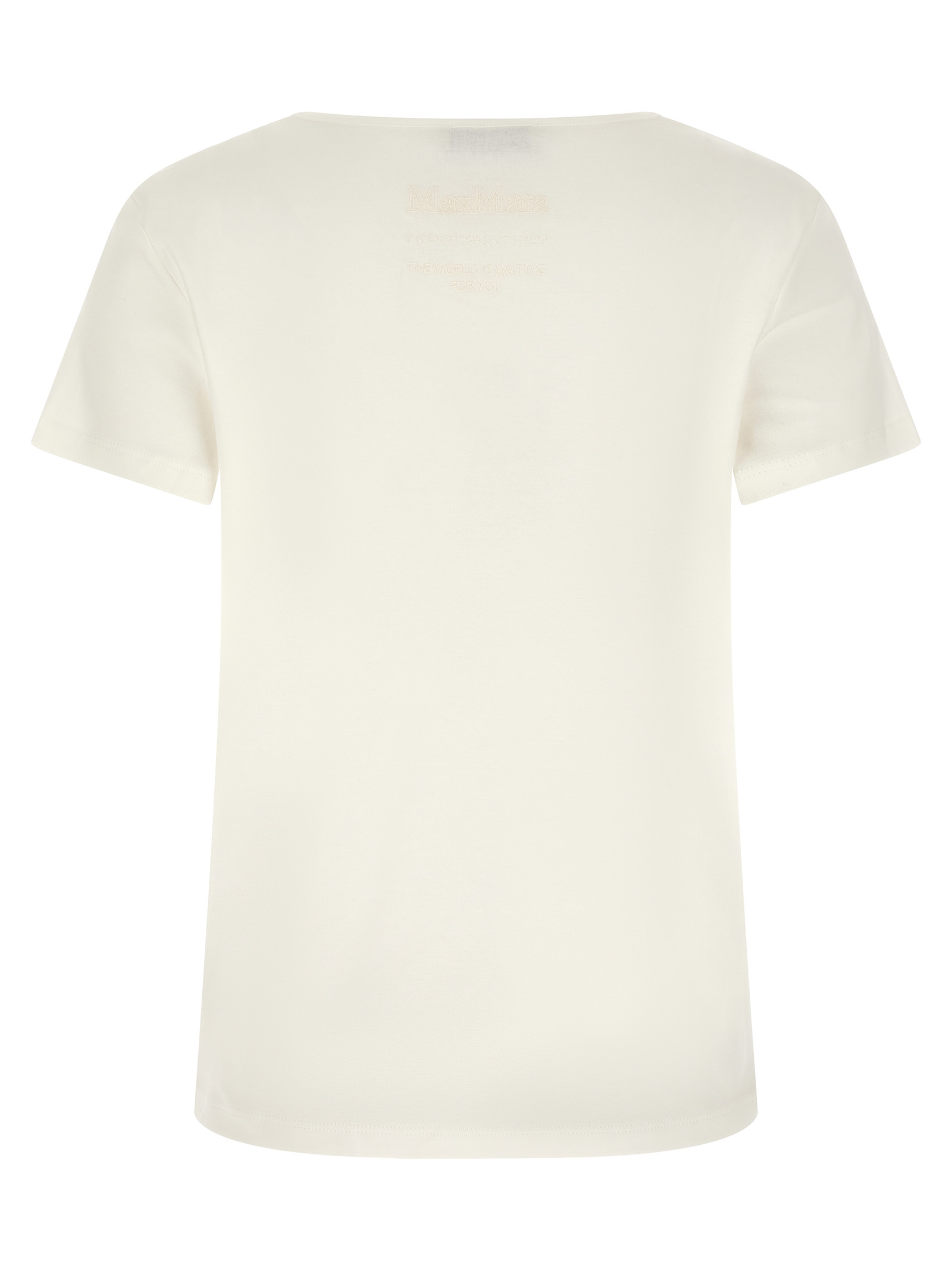 ‘SmmDiva’ cotton jersey T-shirt with tone-on-tone embroidery at the back, wide front neckline, and short sleeves.
