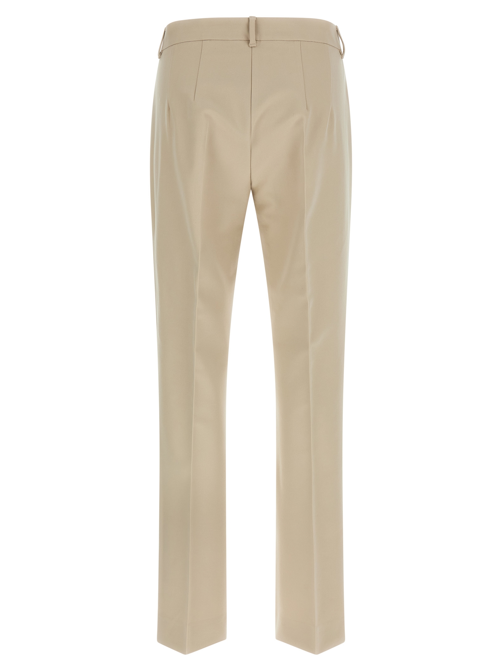 ‘SmmFatina’ trousers in double cotton and stretch viscose, crop model with slightly flared leg, stretched pleat, back pin tucks, zip hook and front button closure, pockets.