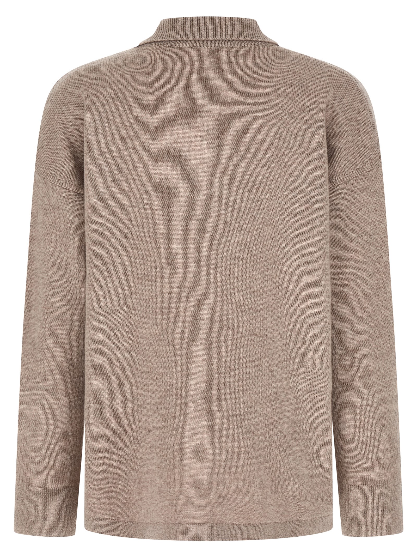 ‘SmmGatti’ cardigan in solid-knit wool and cashmere yarn, slightly flared line, shirt collar, front button closure, long sleeves with dropped shoulders, rounded hem.