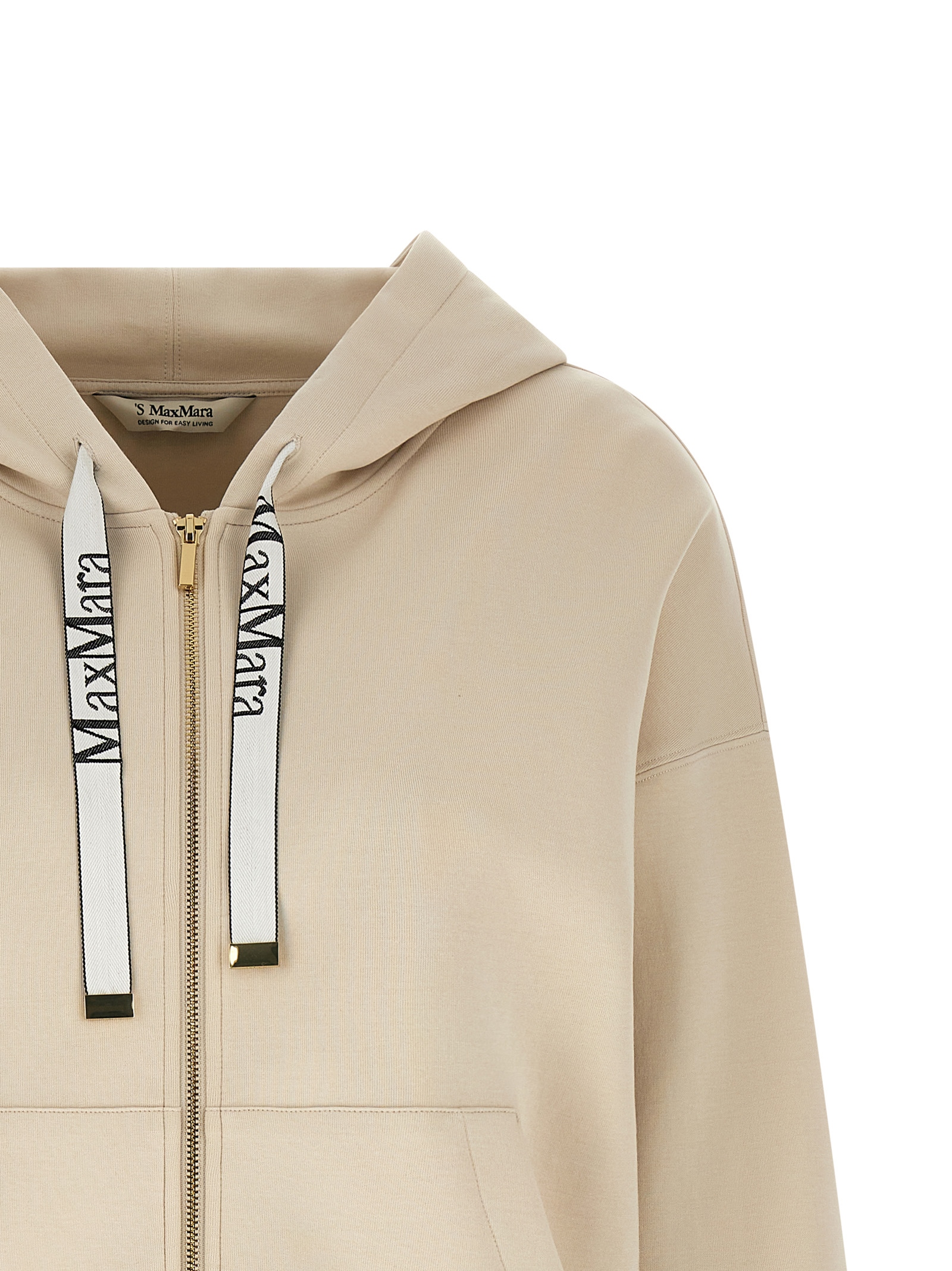 Tech cotton jersey ‘SmmJour’ sweatshirt, adjustable hood with jacquard logo ribbons, front zip closure, pockets, long sleeves with cuffs and dropped shoulders, and headband.