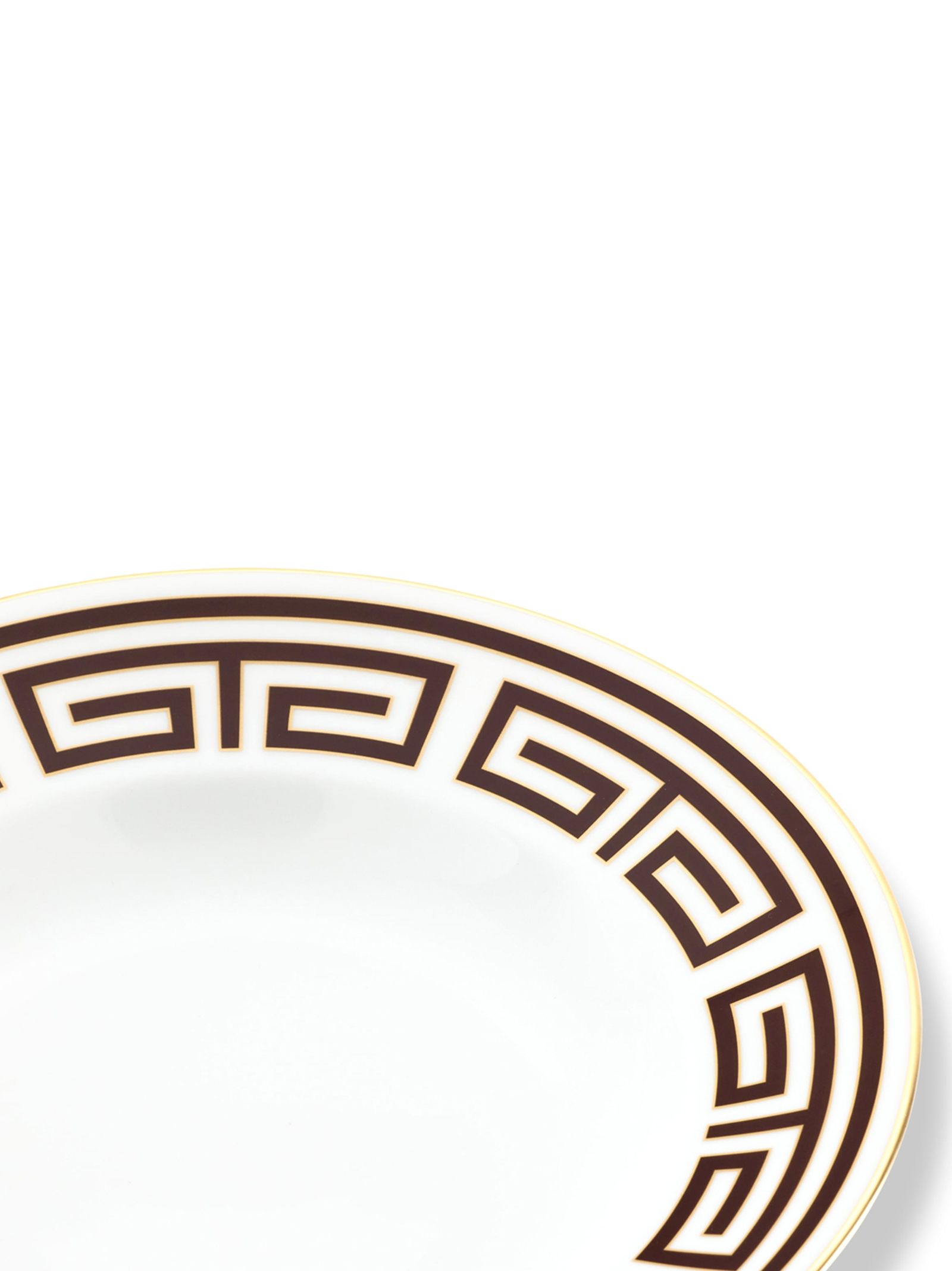 Porcelain soup plate with brown Ebony decoration and gold thread. ‘Labirinto’ collection by Gio Ponti.