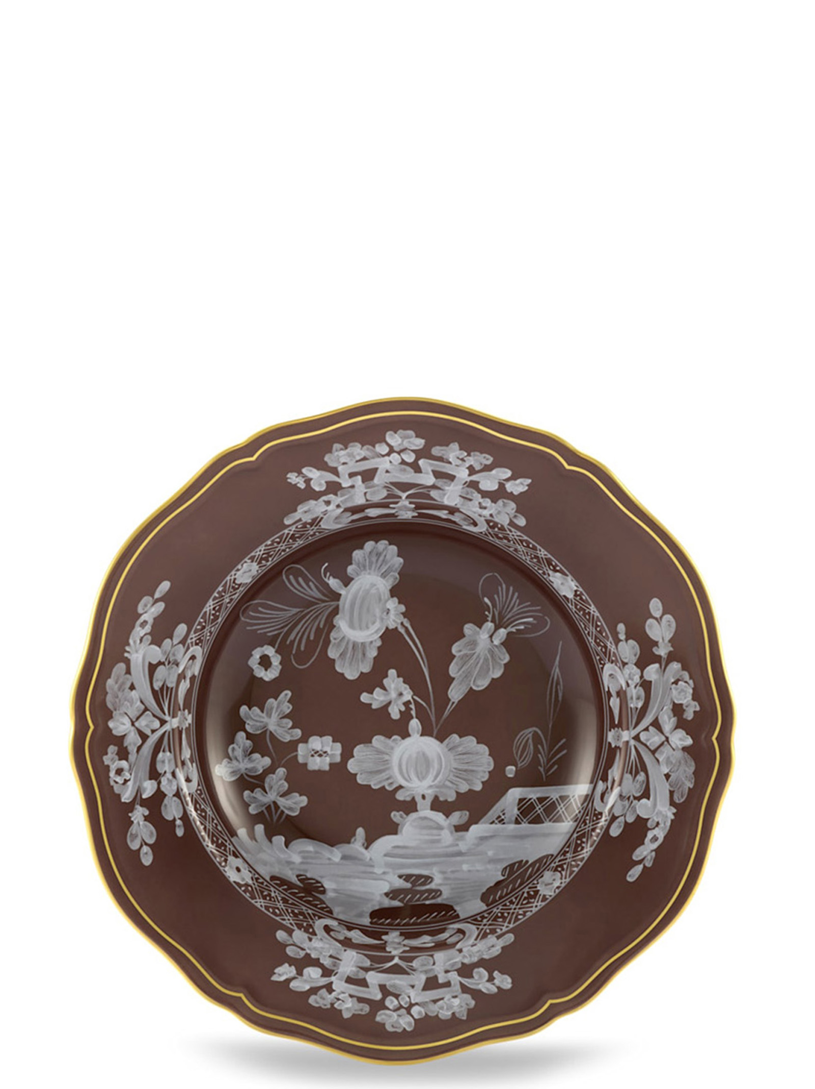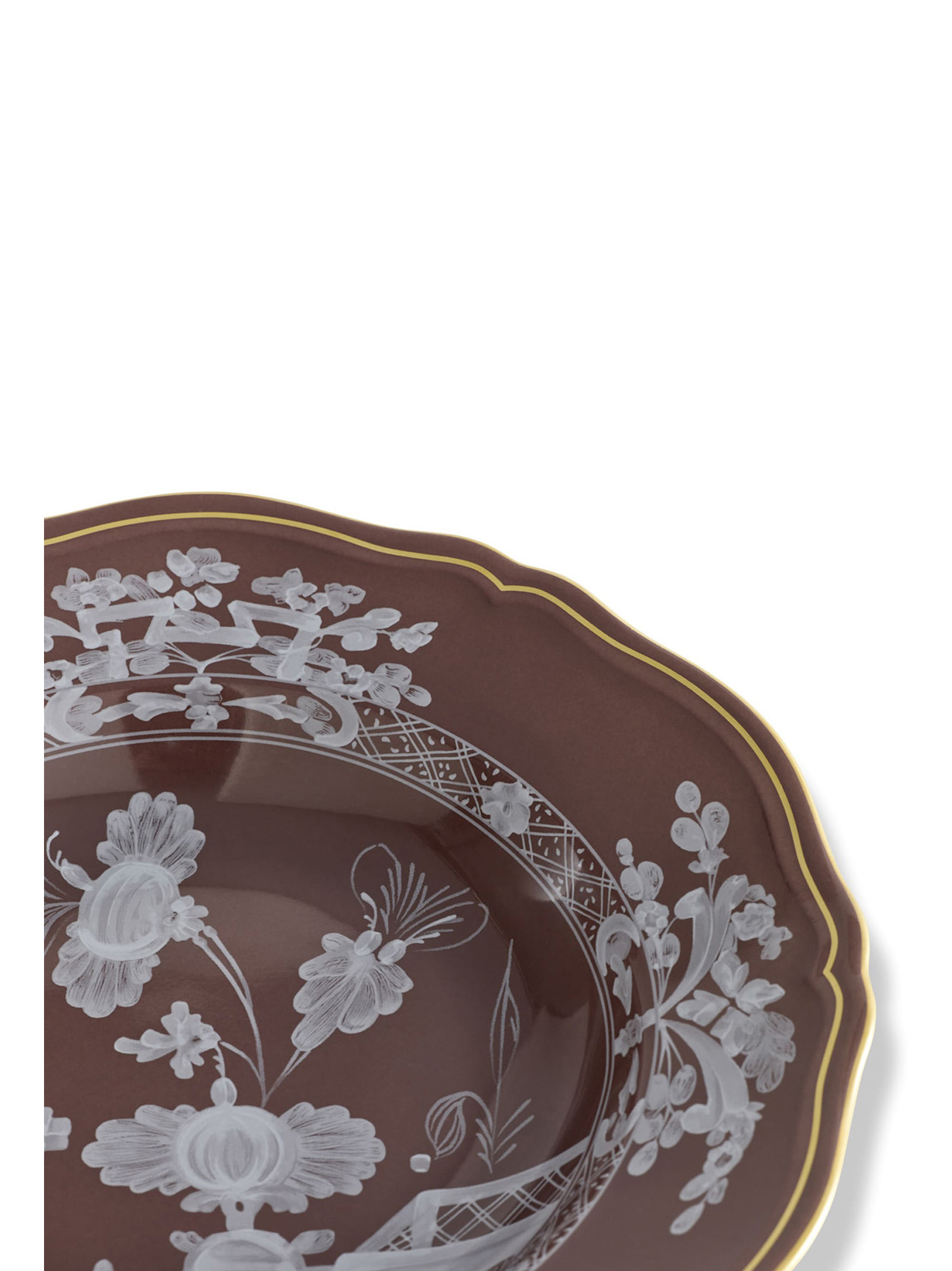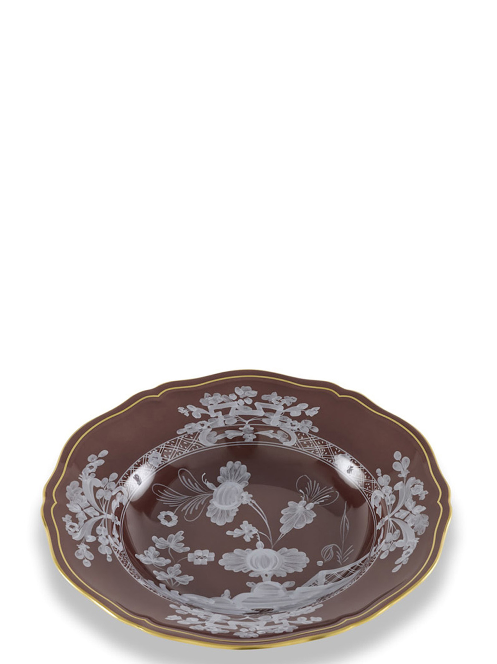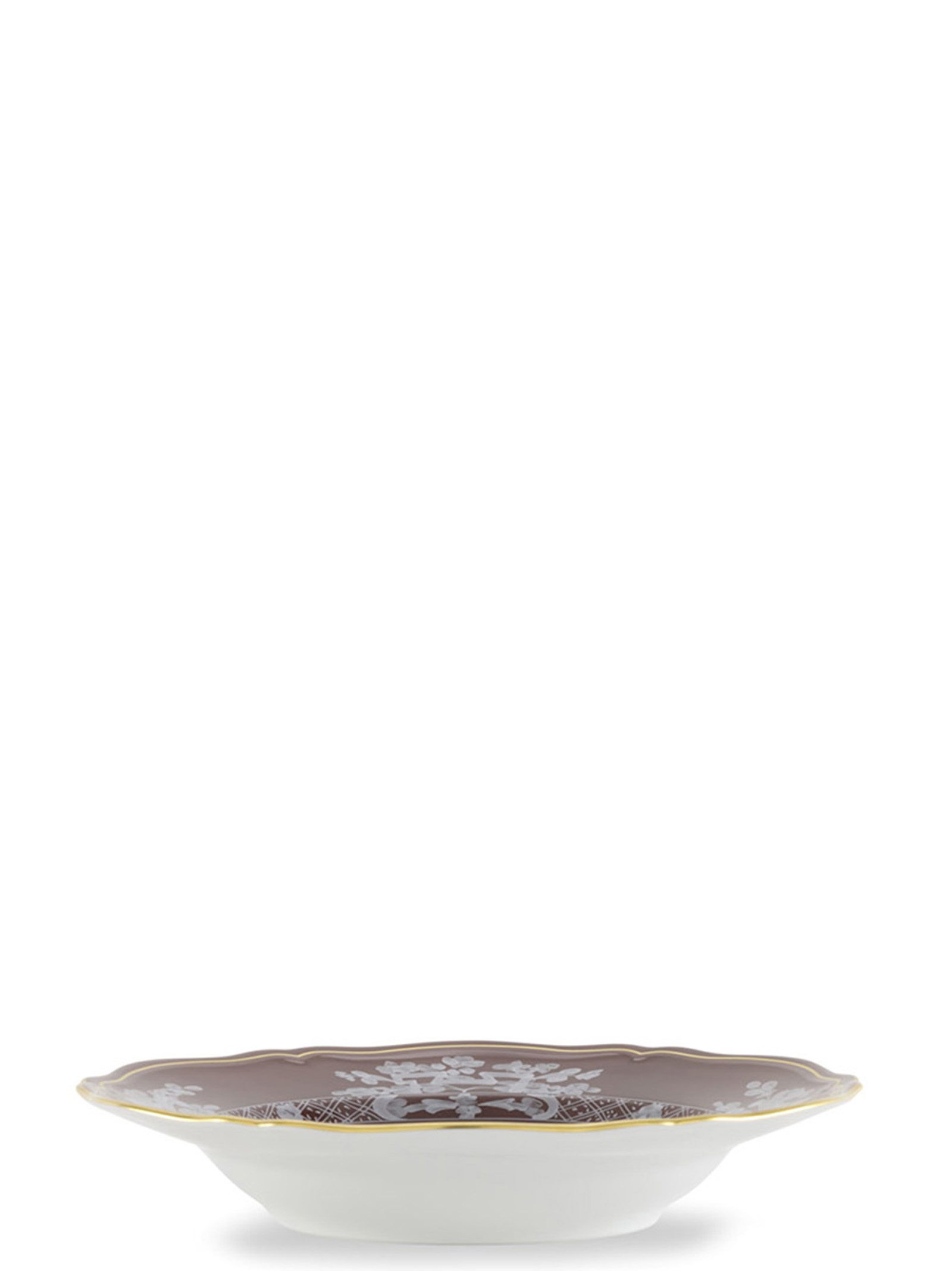 Porcelain soup plate with chestnut decoration and gold thread. ‘Oriente Italiano’ collection.