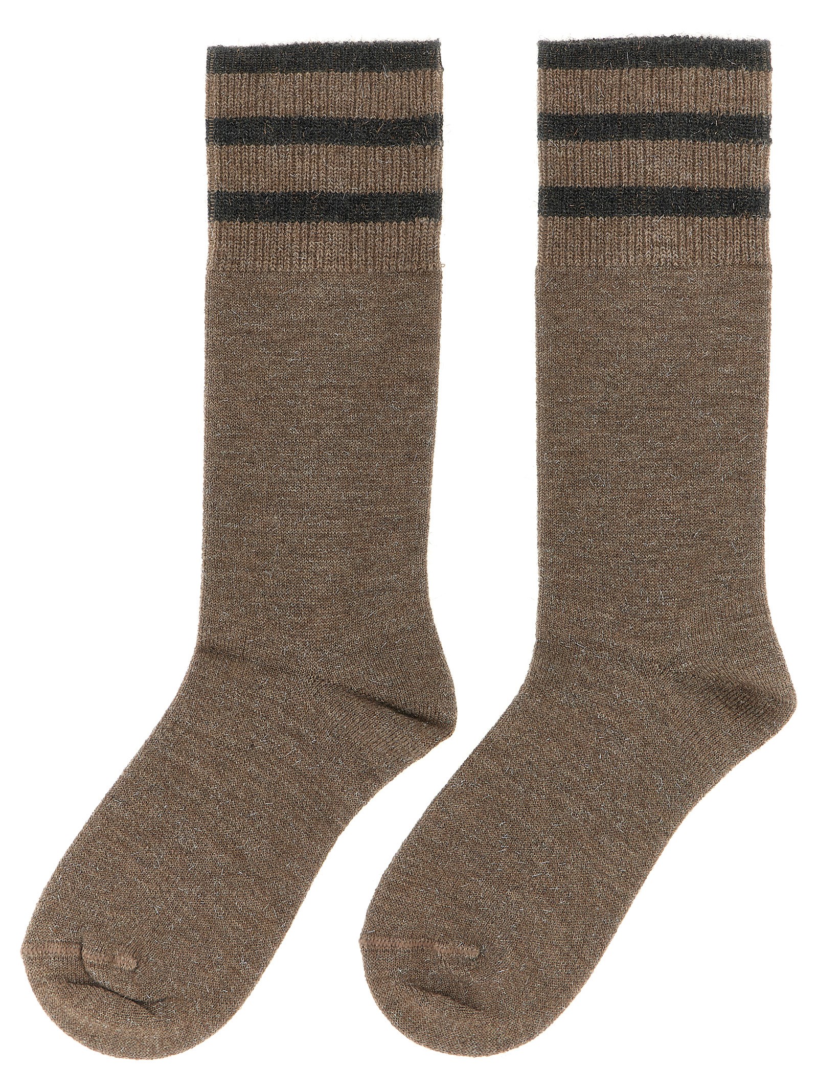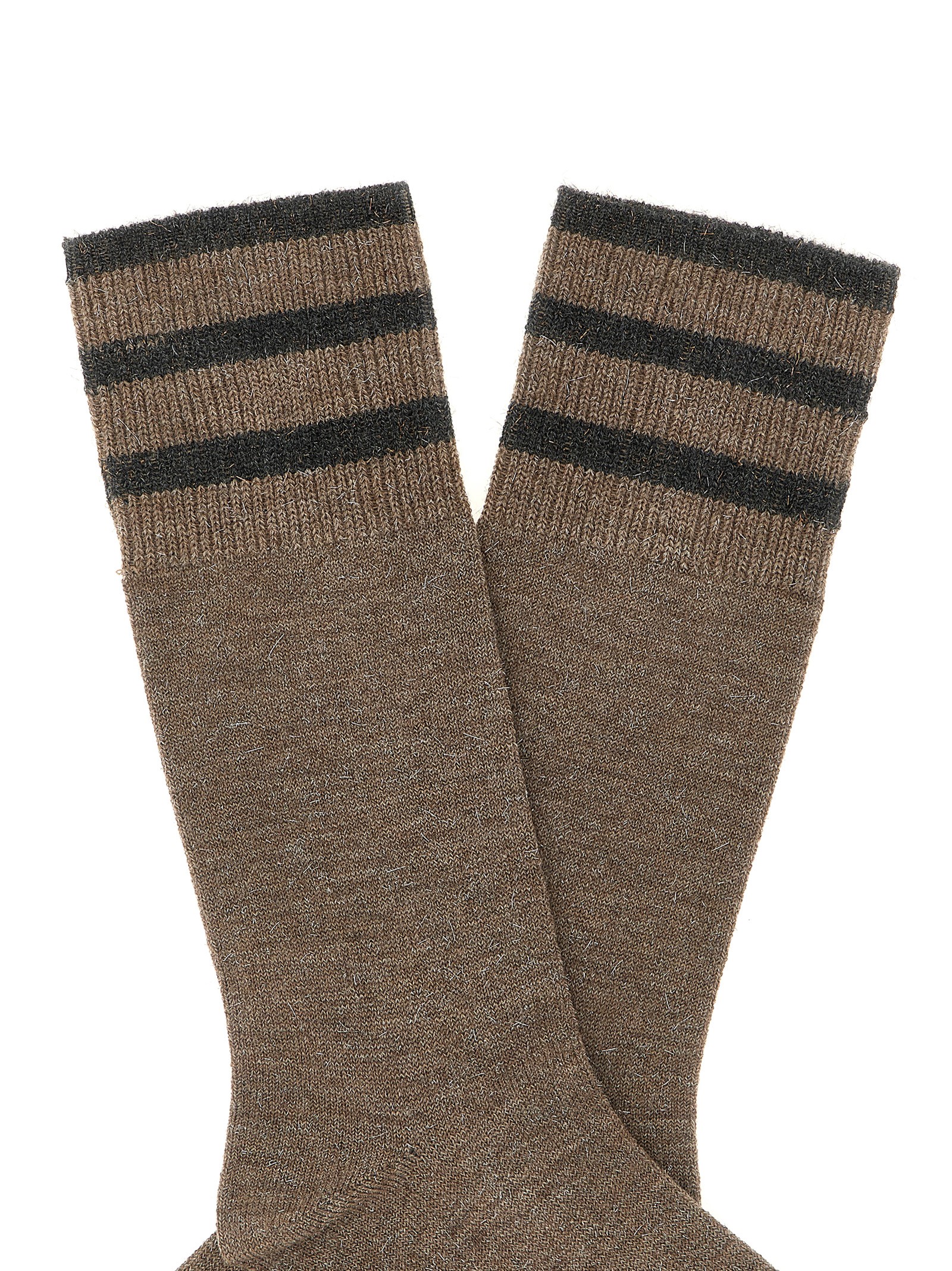 Sparkling’ cashmere knit socks with lamé thread and contrast details.