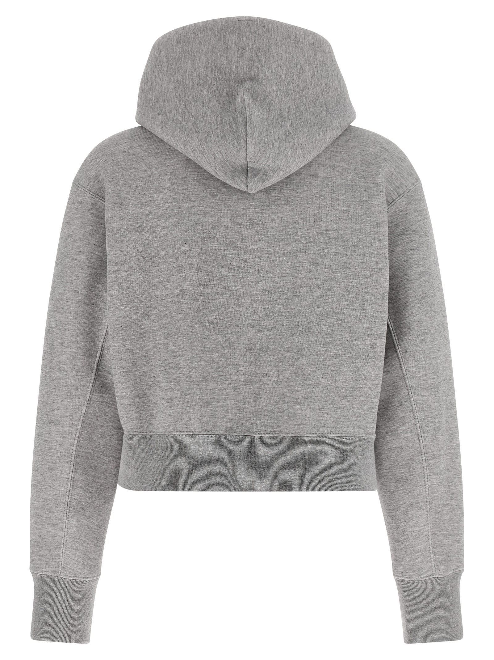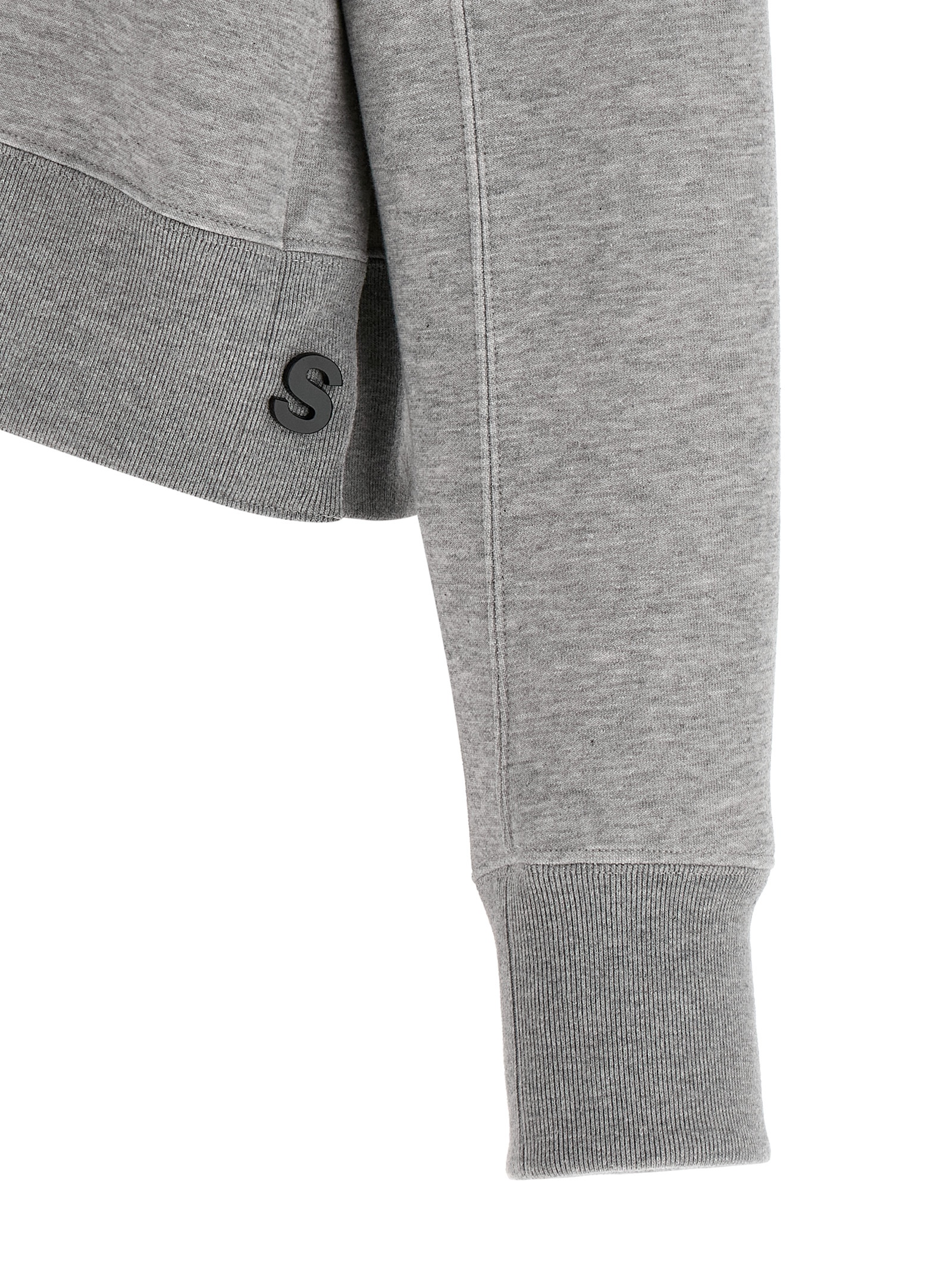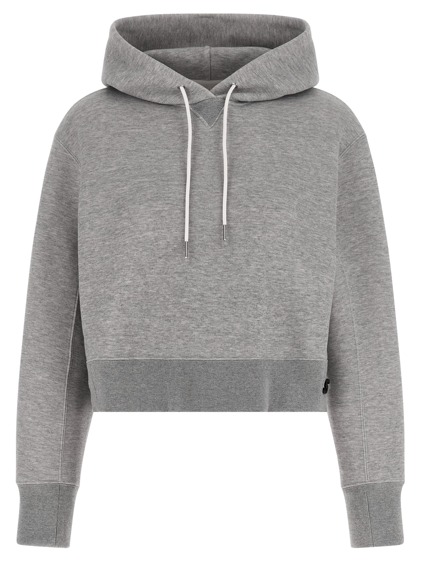 ‘Sponge’ cropped hoodie in mélange cotton blend with removable tone-on-tone metal logo pin, long sleeves with cuffs and dropped shoulders, side slits with snap buttons.
