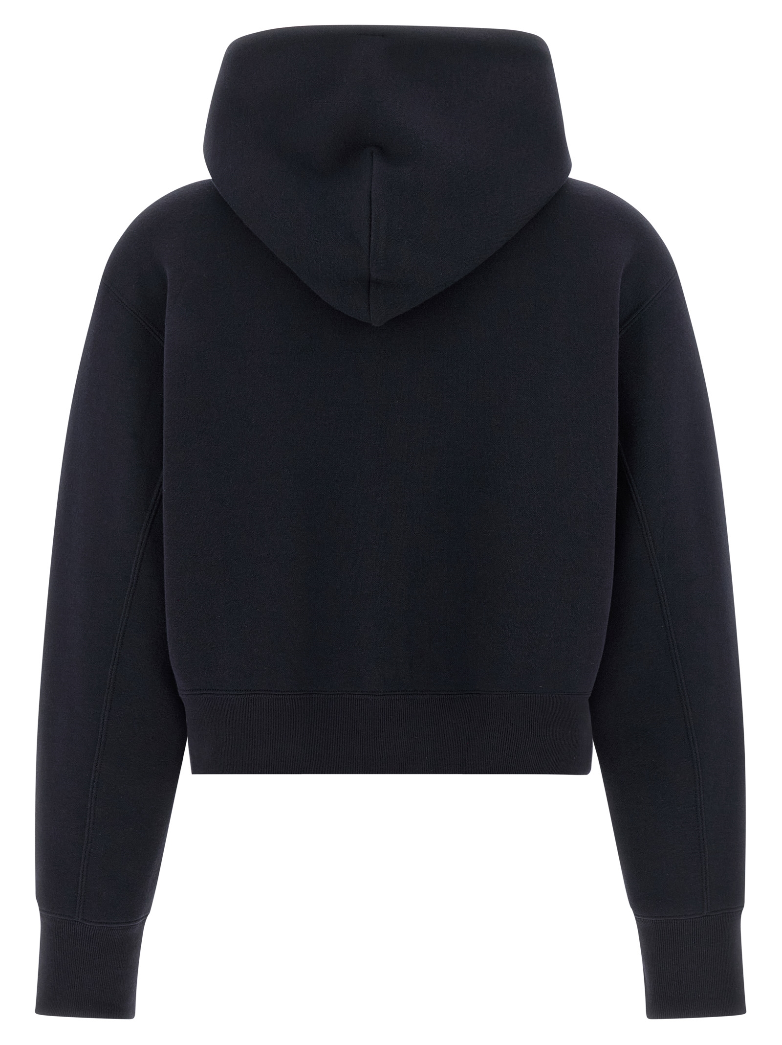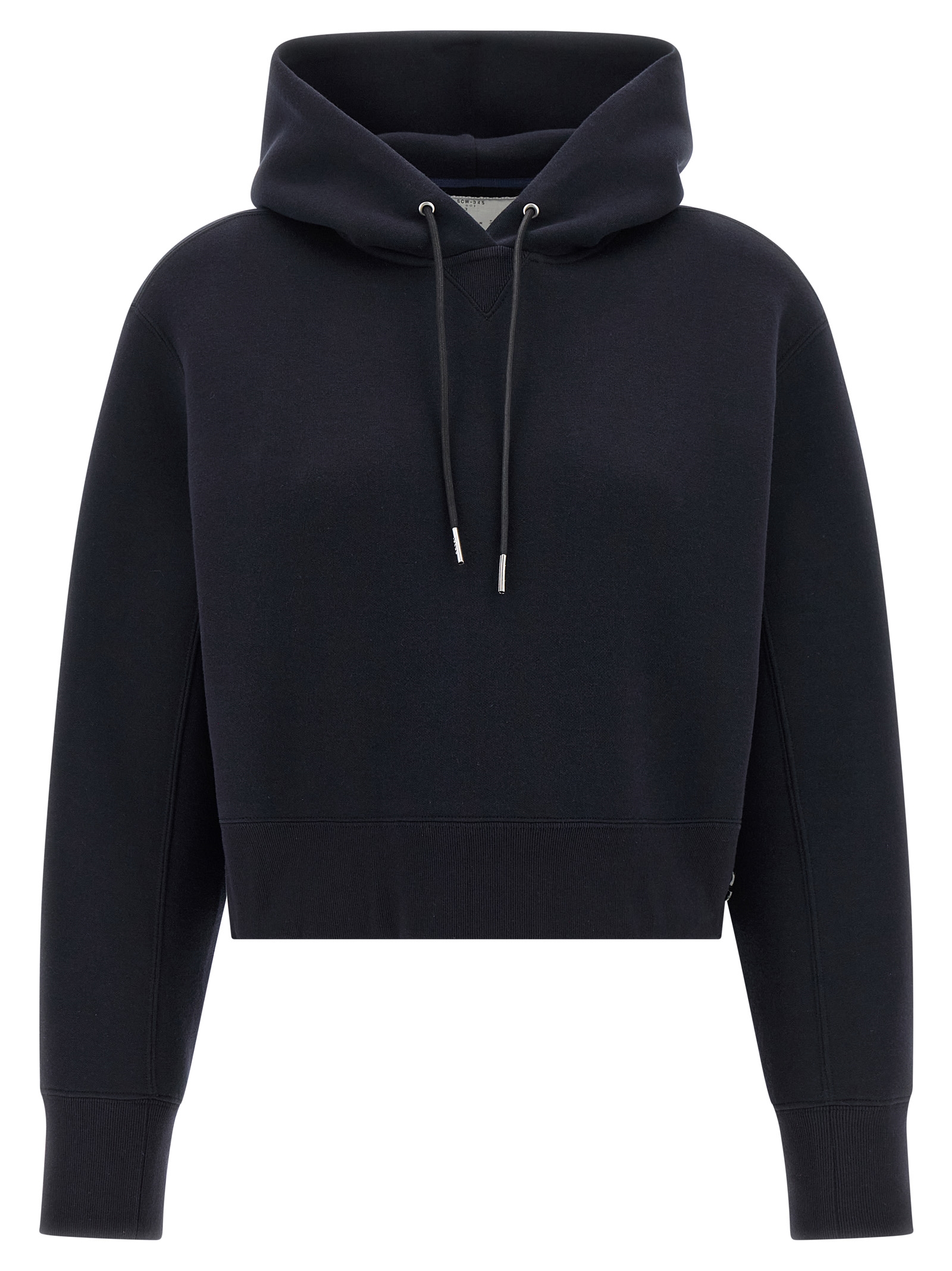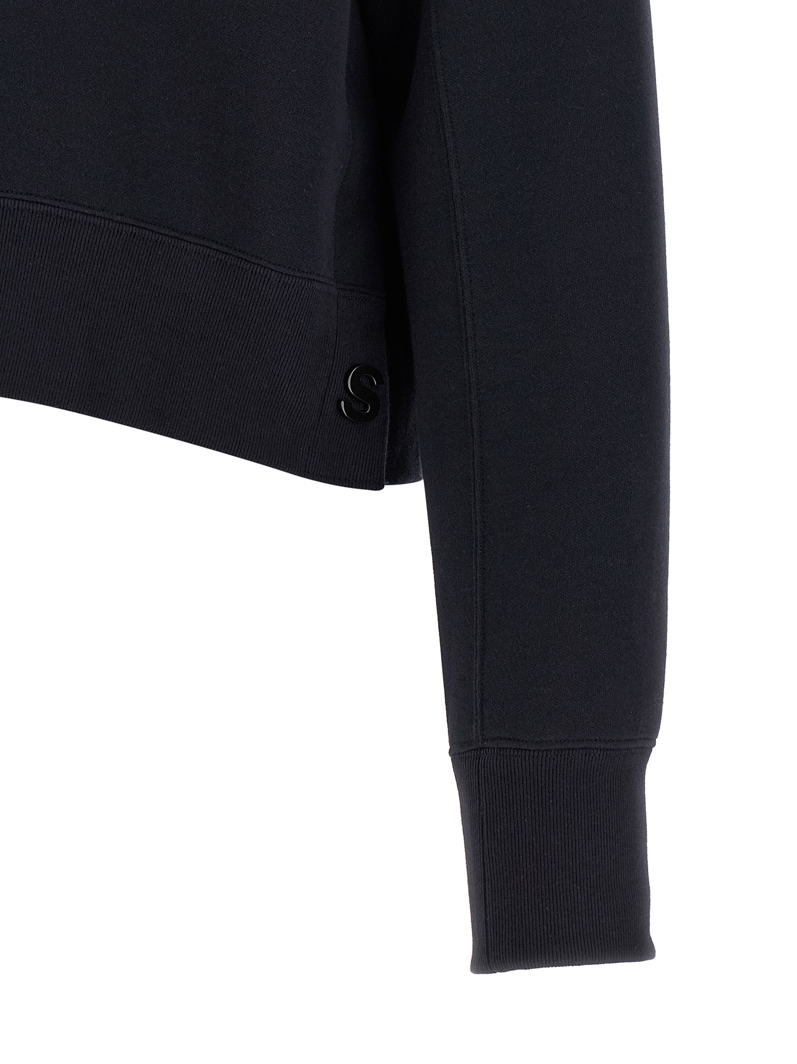 ‘Sponge’ cotton blend hoodie with crop style, removable tone-on-tone metal logo pin, long sleeves with cuffs and dropped shoulders, side slits with snap buttons.