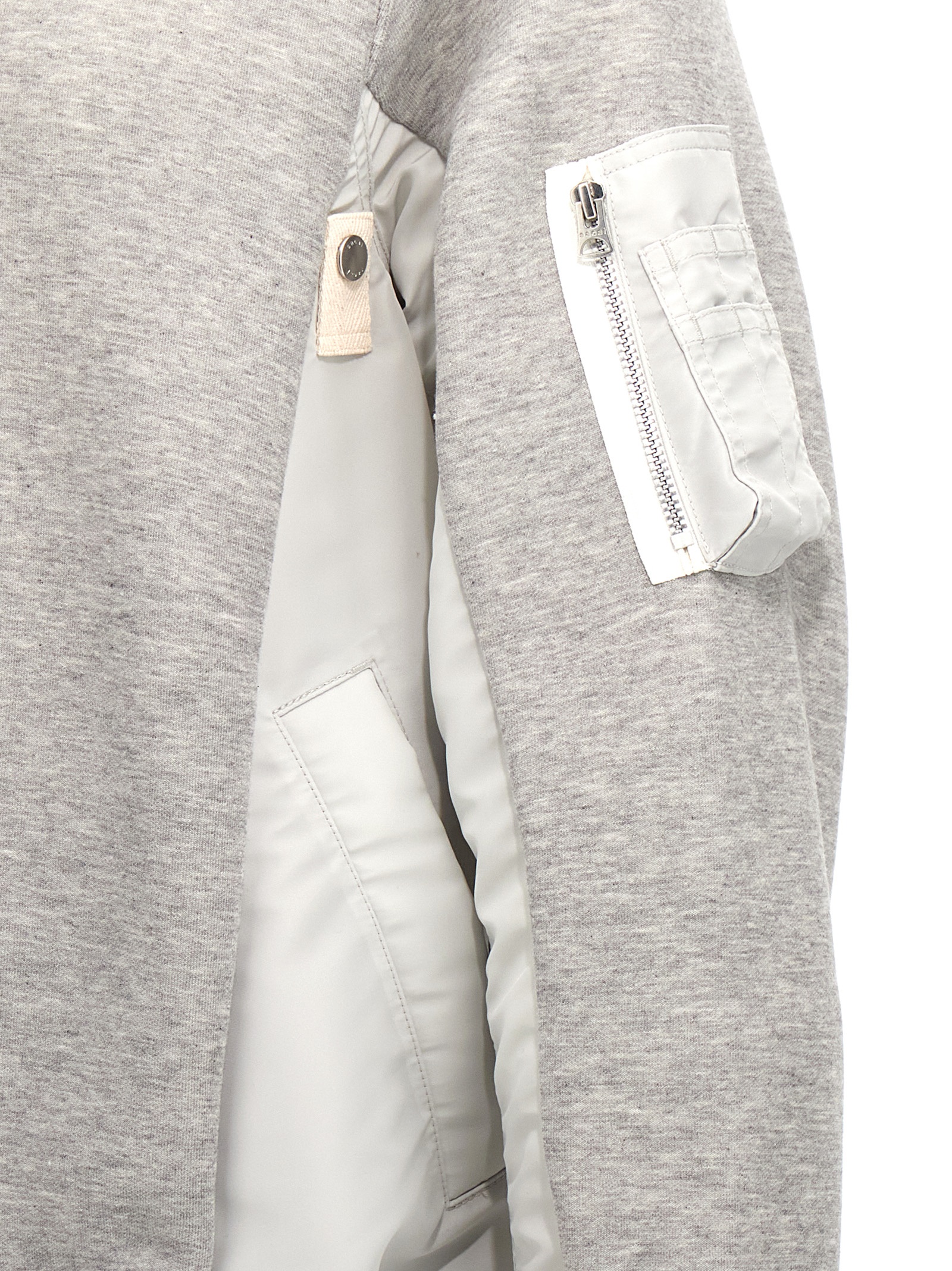 ‘Sponge’ cotton blend hoodie with nylon inserts, zip closure, pockets, long cuffed sleeves.