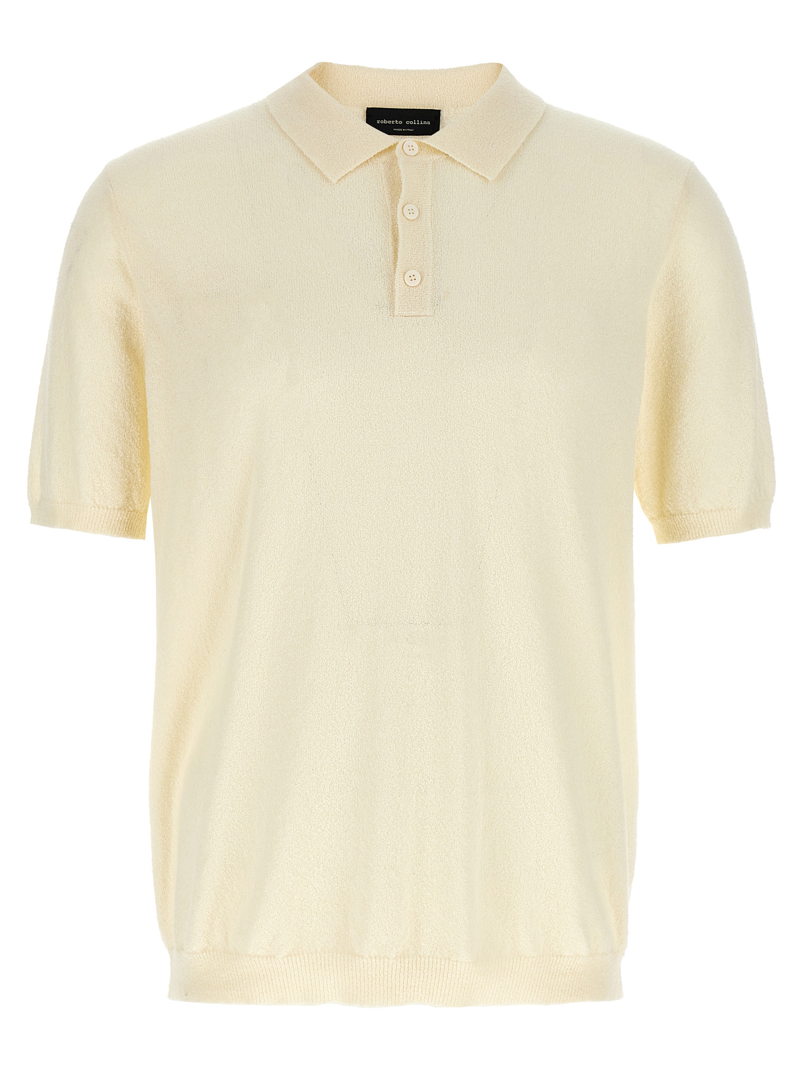 Polo shirt in cotton blend knit with terry effect, collar and buttons, short sleeves with cuffs.