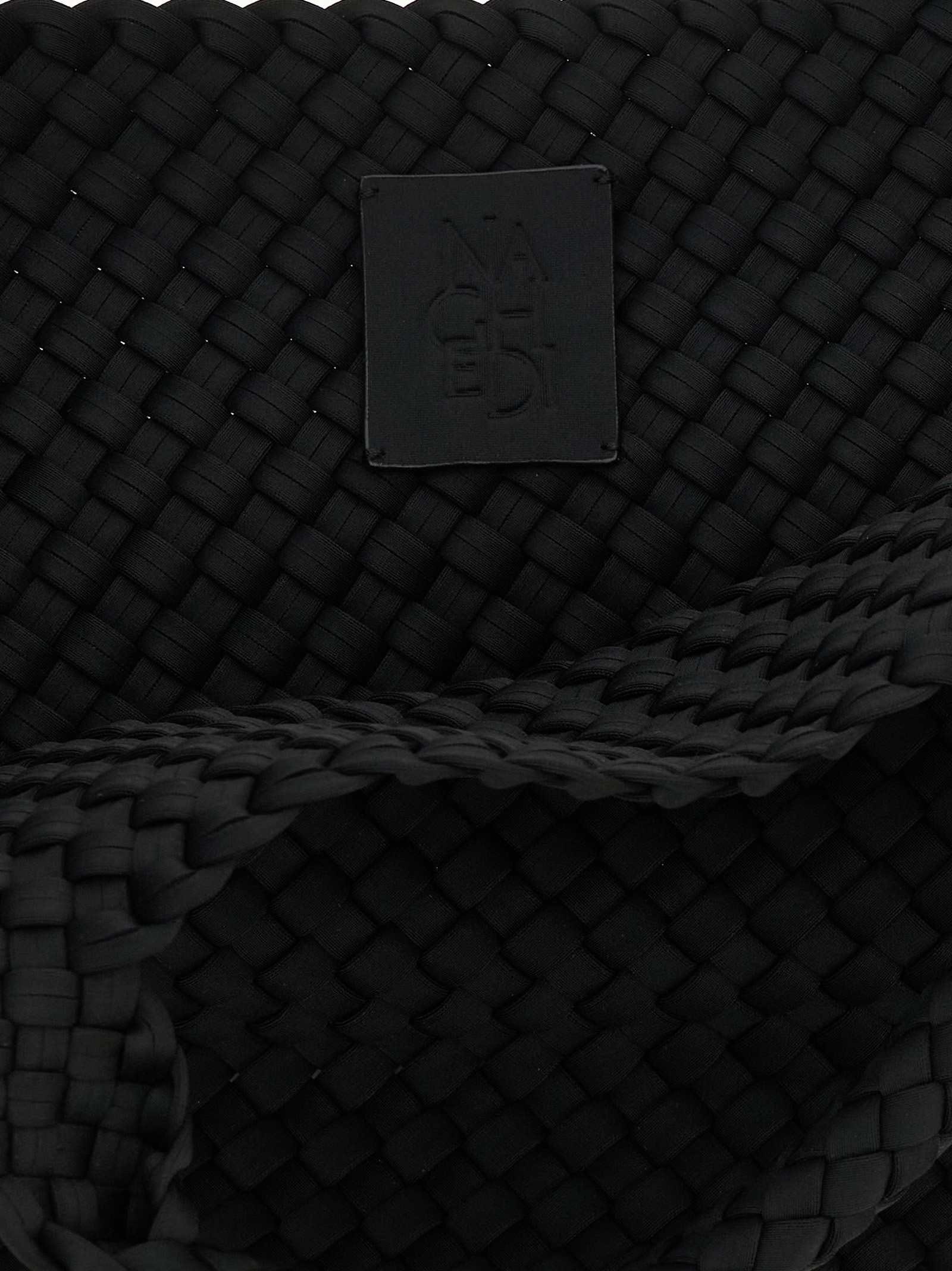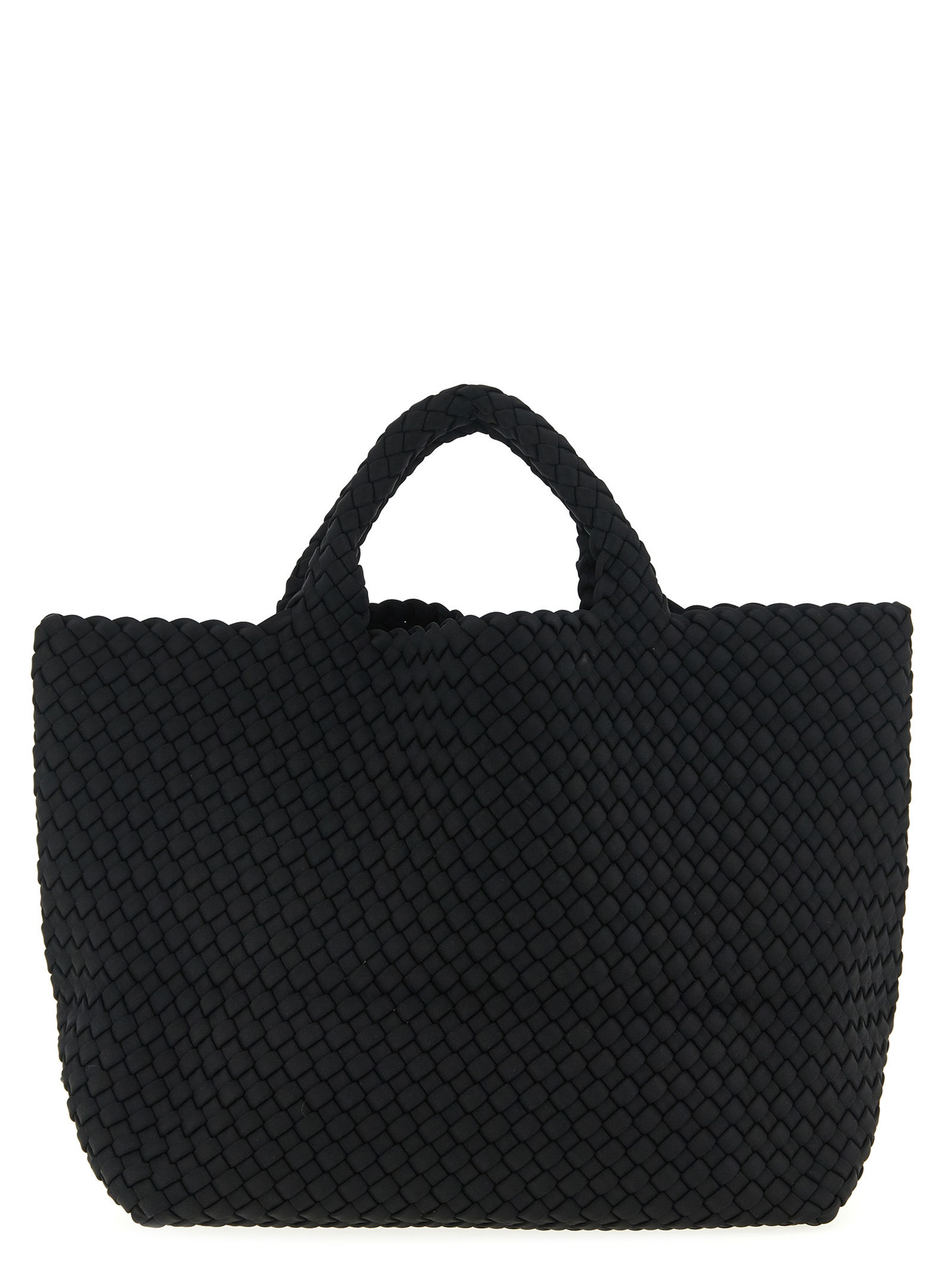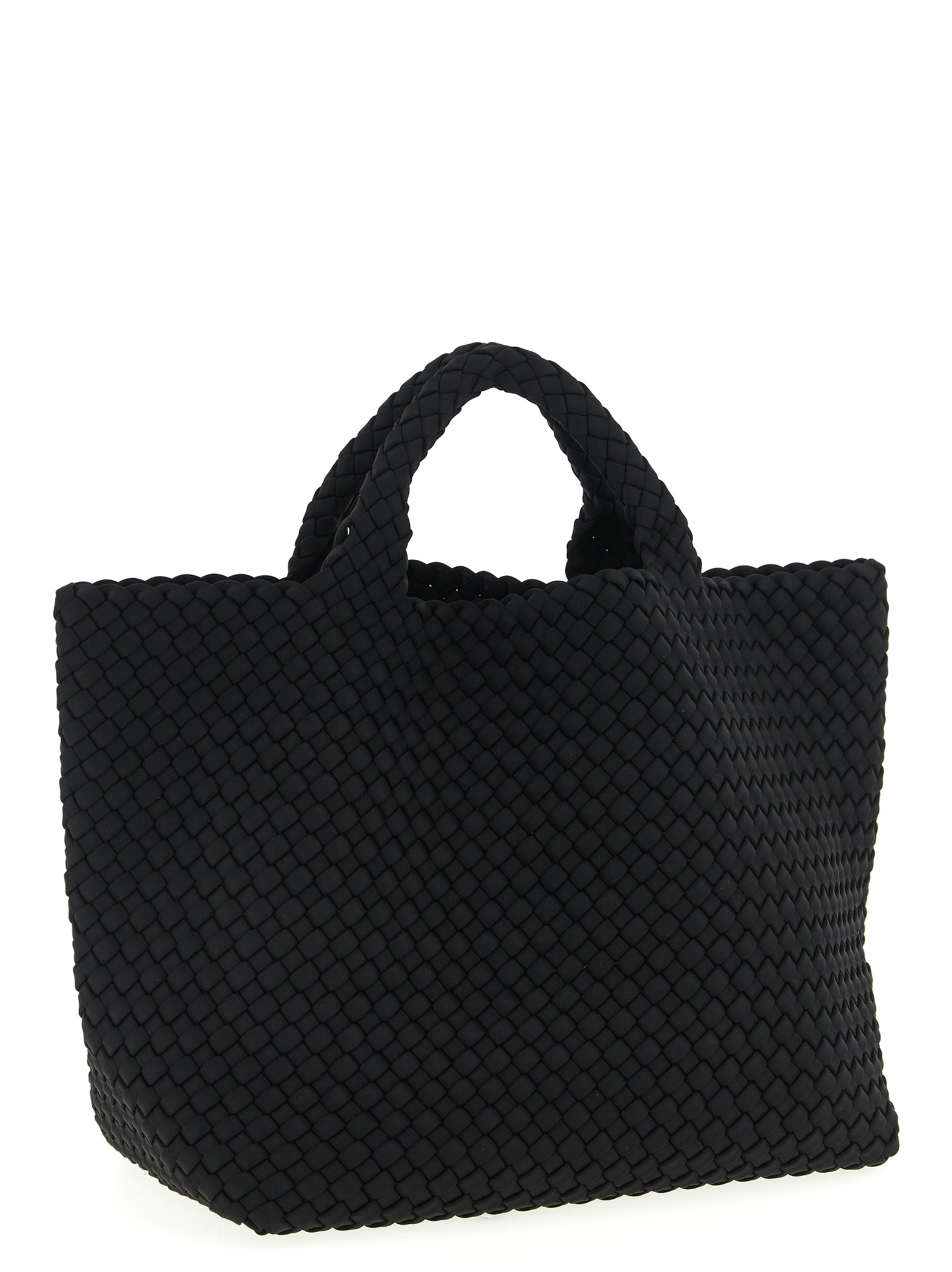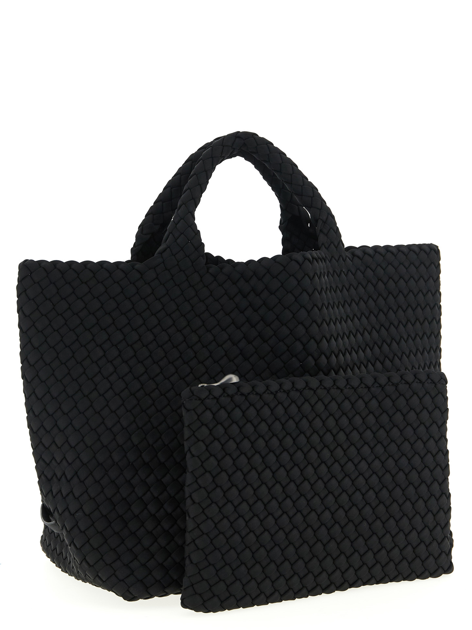 Hand-woven neoprene St. Barths Medium shopping, double fixed handle, tone-on-tone logo patch on the side, and removable matching clutch.