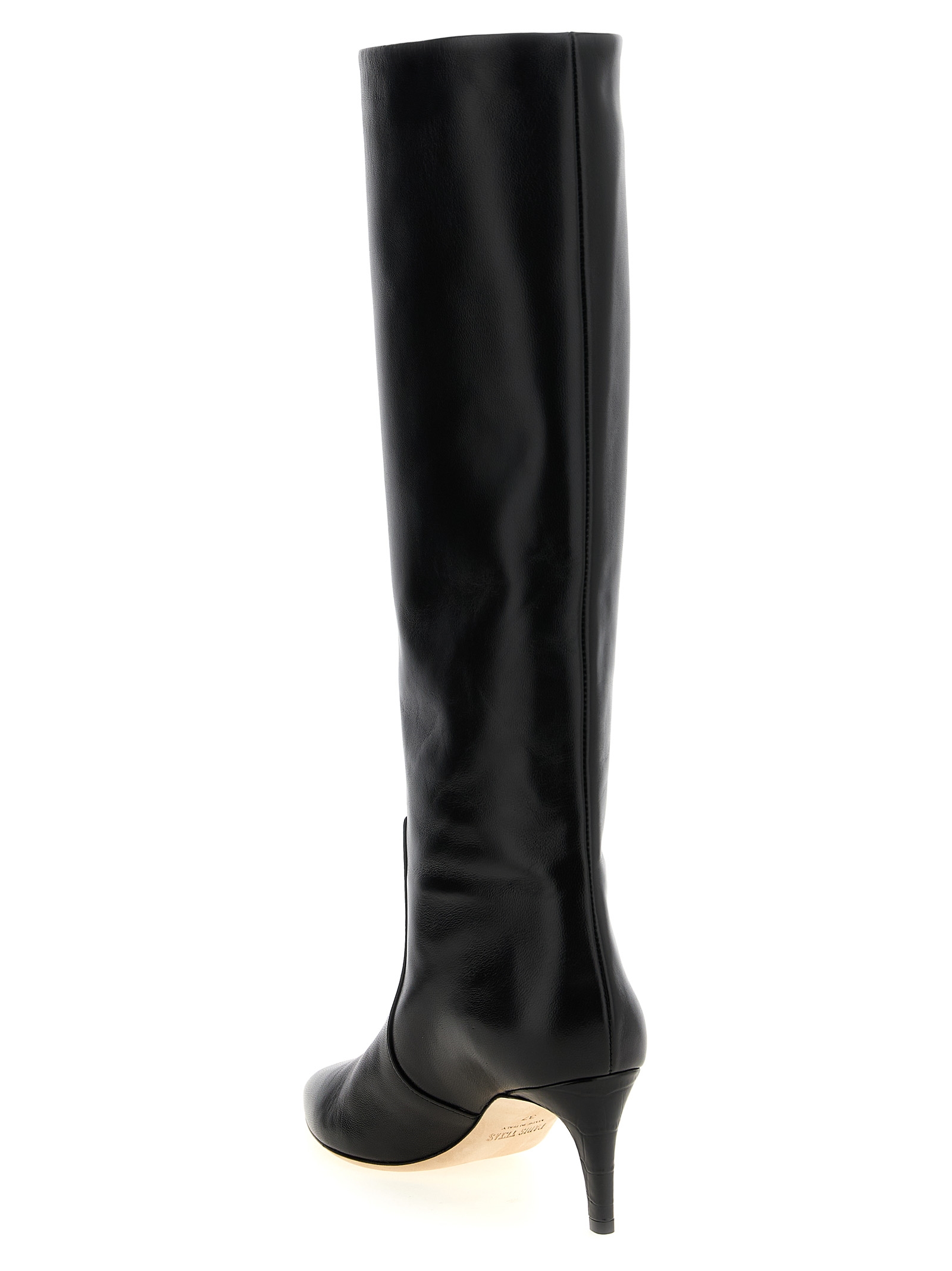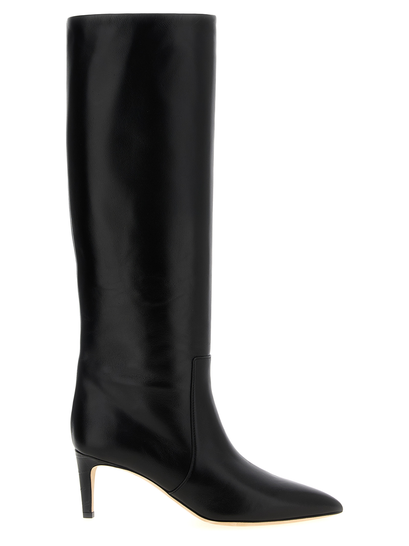 Nappa ‘Stiletto Boot’ boots, tube leg, tapered toe, thin heel with crocodile print, leather sole.