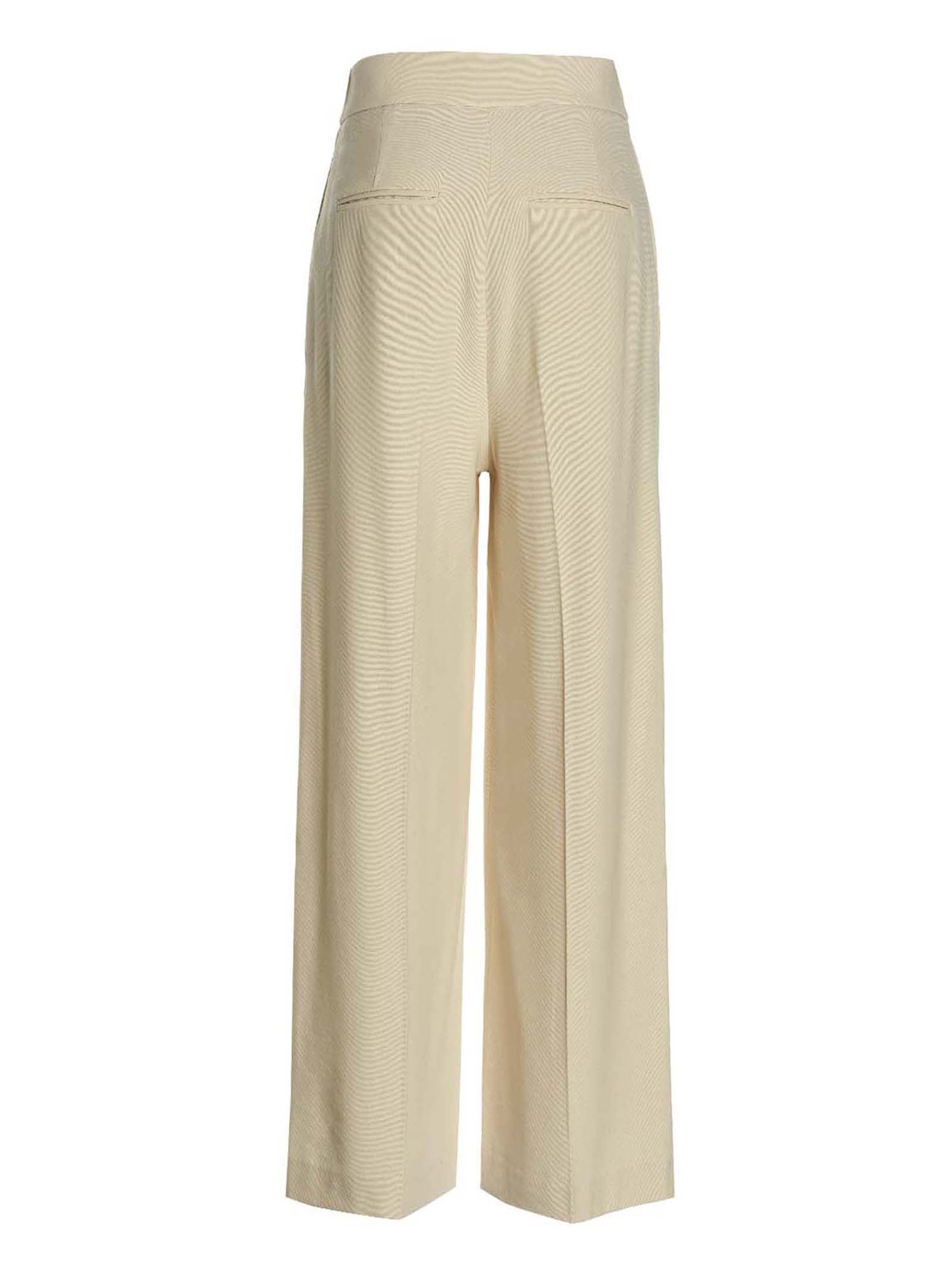 Strannly’ viscose blend wool pants with extra long and loose leg, French pockets, zip and hook closure.