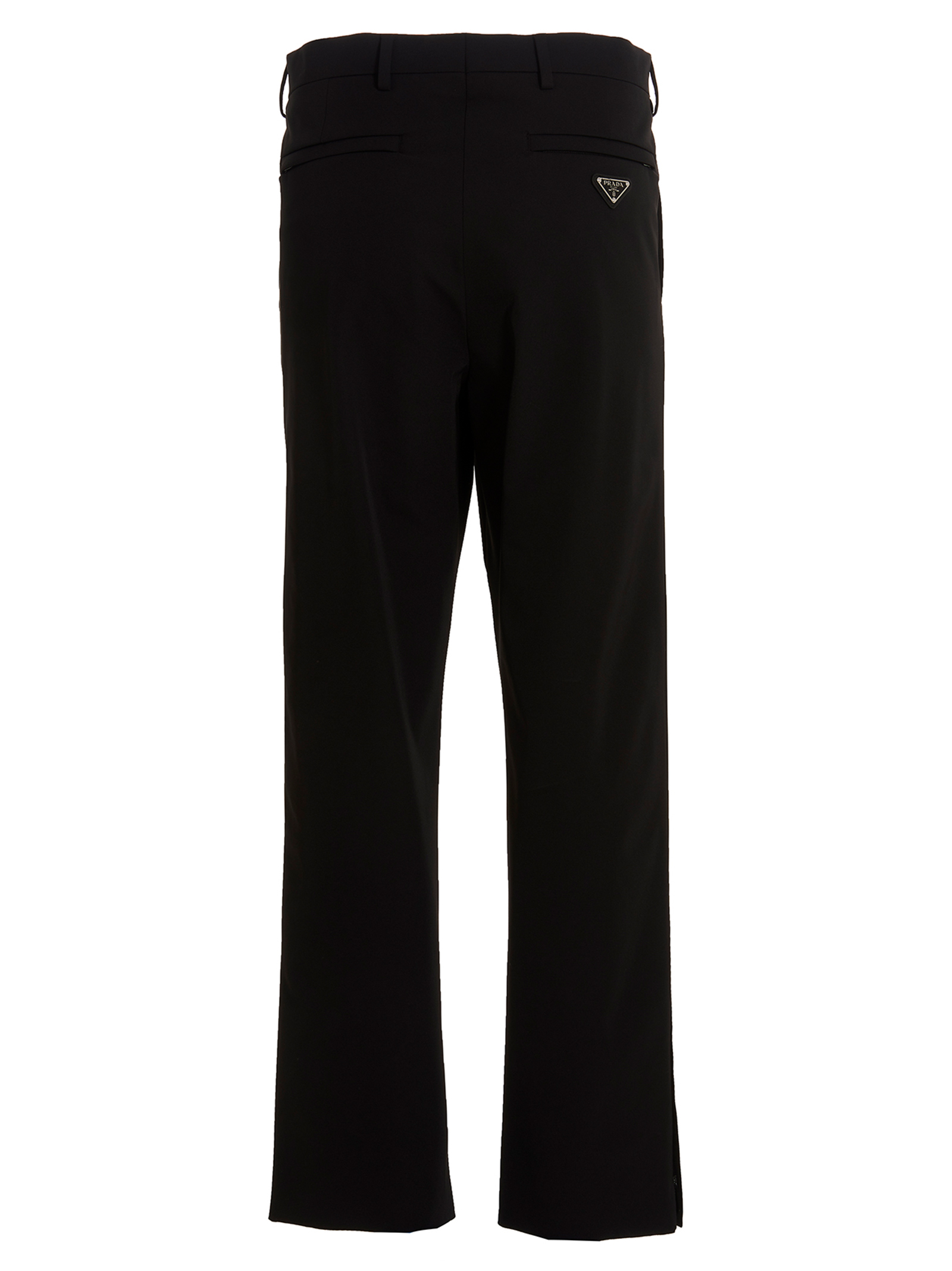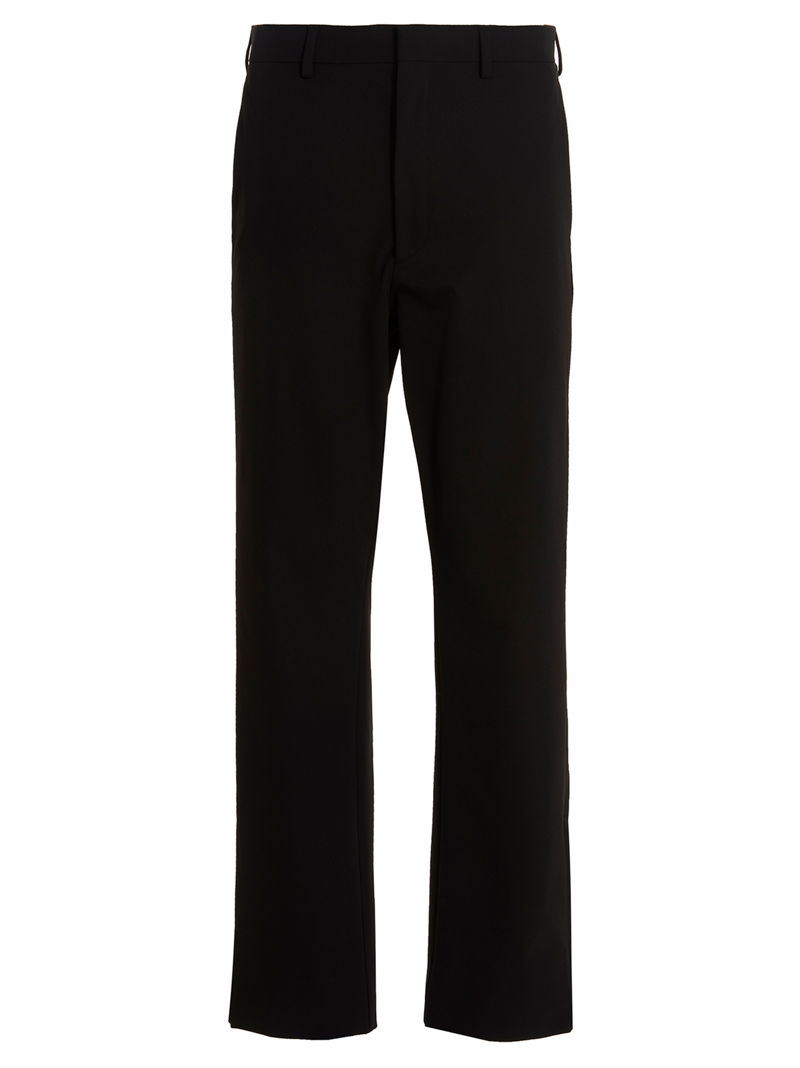 Stretch techno fabric pants with a hook-and-eye and button zip closure, pockets and zip detailing on the leg bottoms.