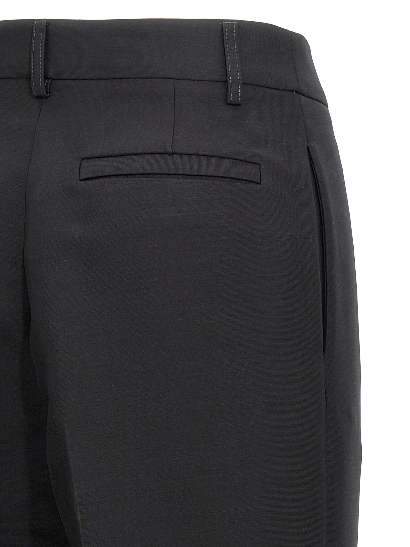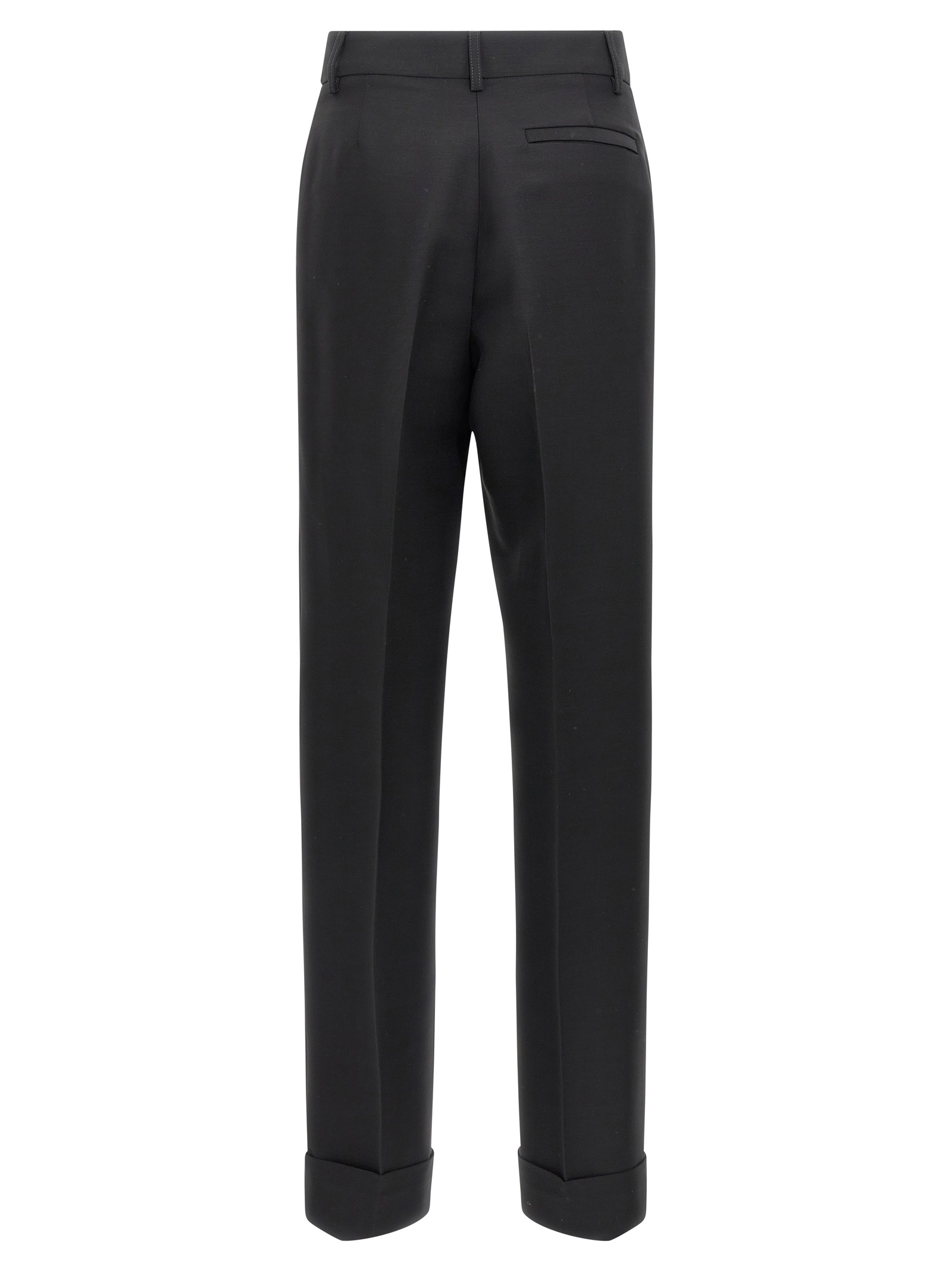 Viscose and virgin wool blend trousers, straight leg with stretched crease, turn-up on the leg bottom, hook and button zip closure, pockets.