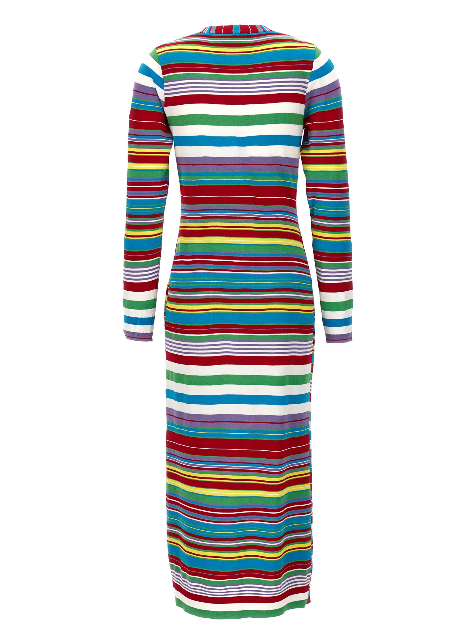 Long striped stretch viscose cardigan with button closure, pockets, long cuffed sleeves.