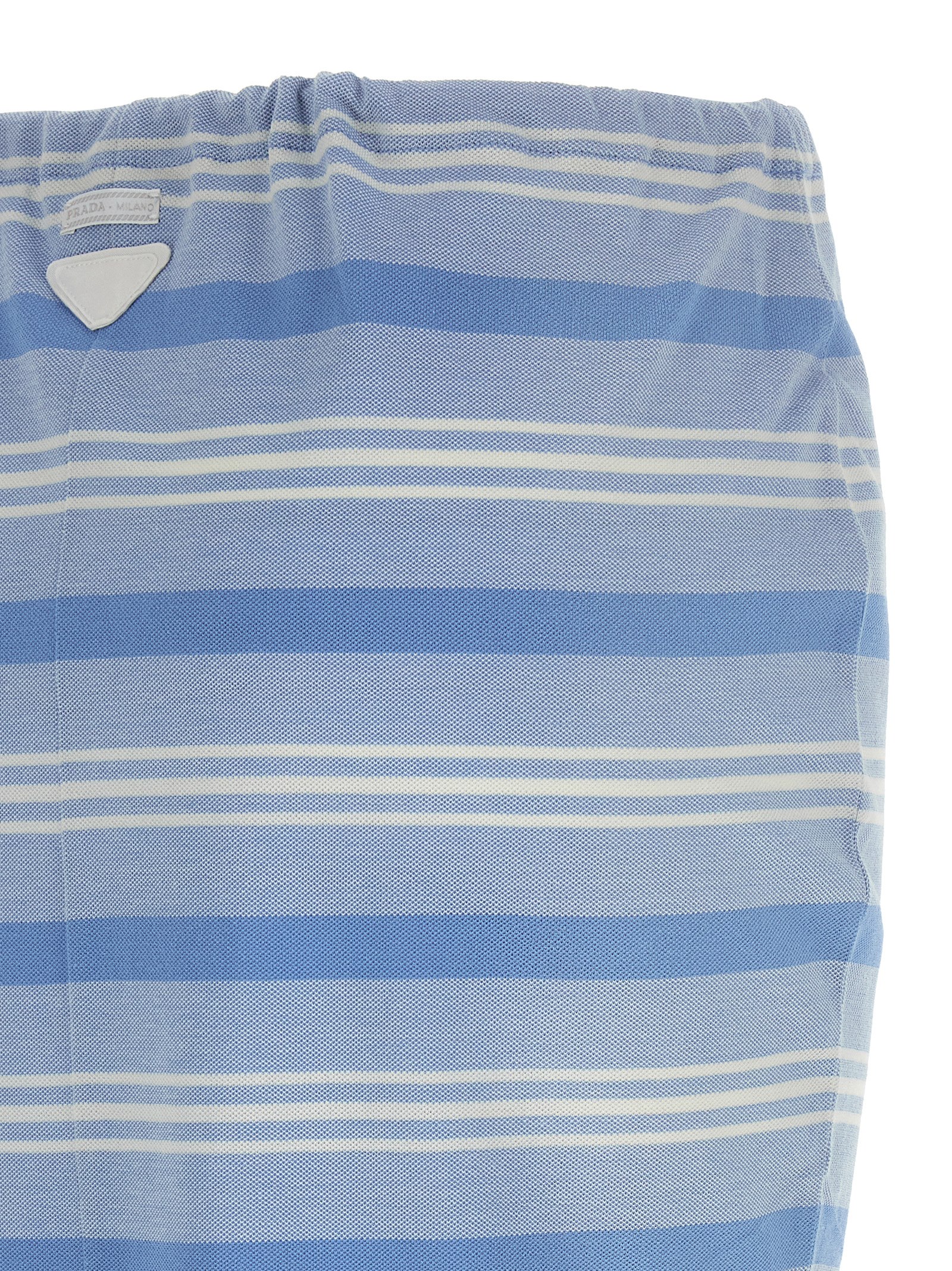 Midi skirt in striped piqué baiadera cotton, longuette model, triangle logo in fabric and back split, drawstring at the waist, unlined.