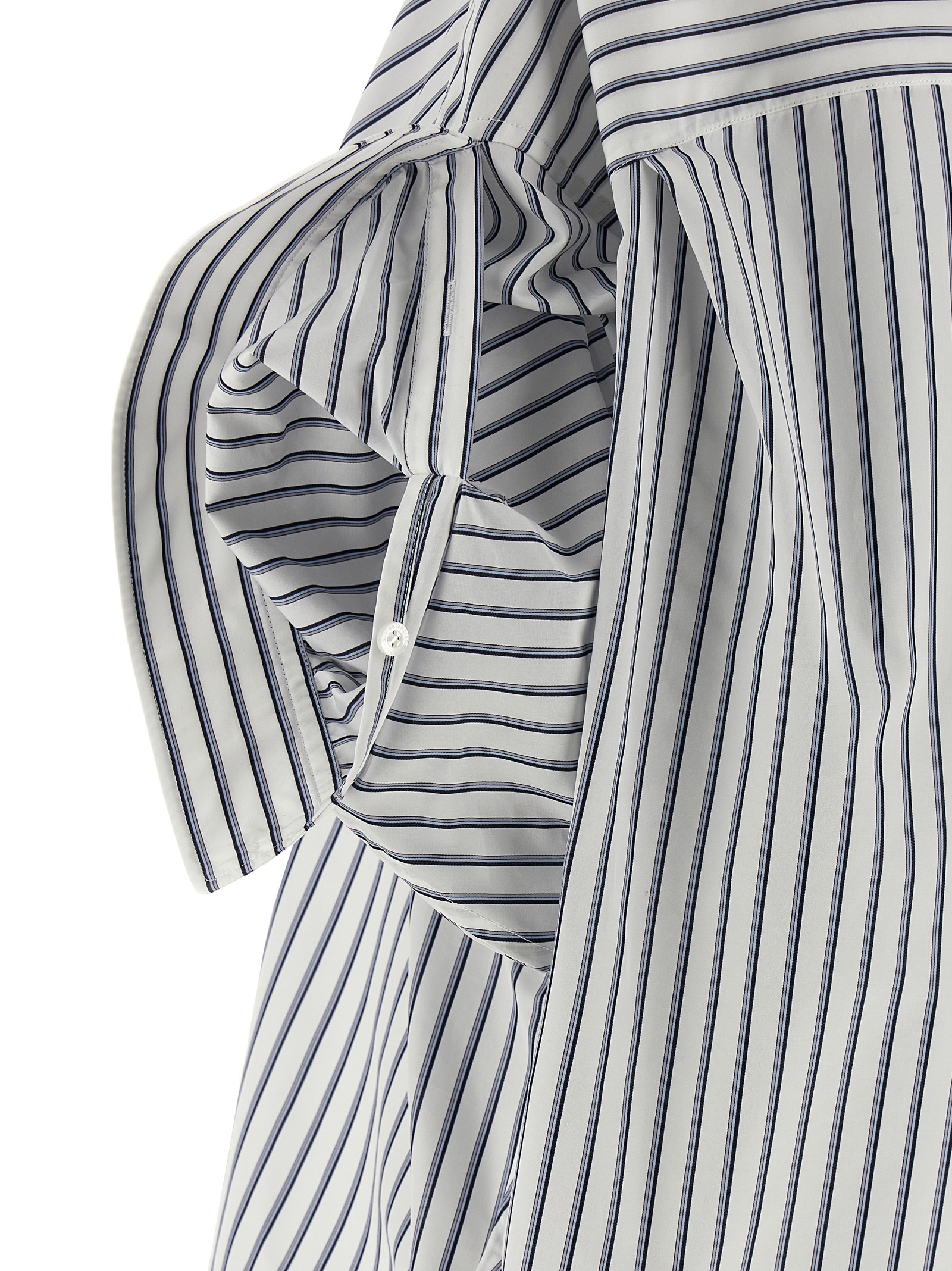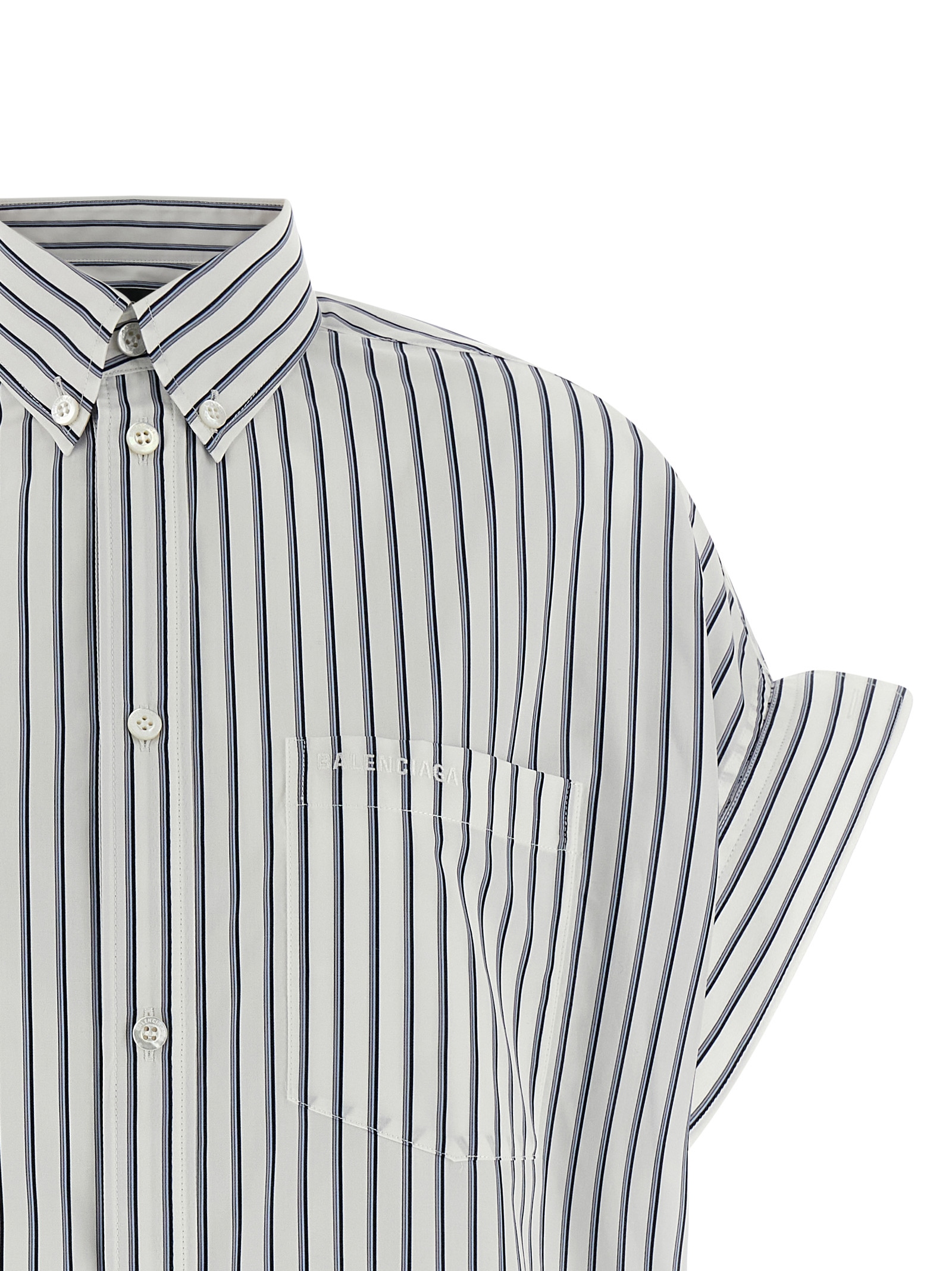 Striped cotton poplin shirt, button-down model, chest pocket with tone-on-tone embroidered logo, front button closure, short flap sleeves with turned-up cuffs, rounded hem.