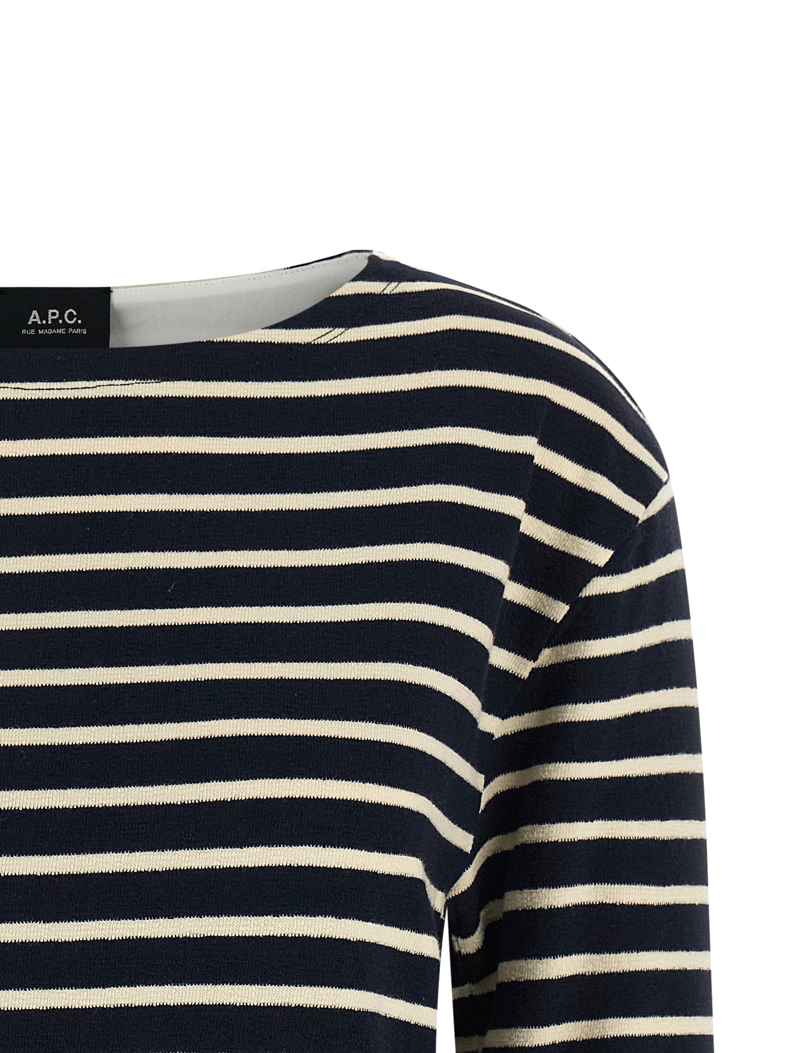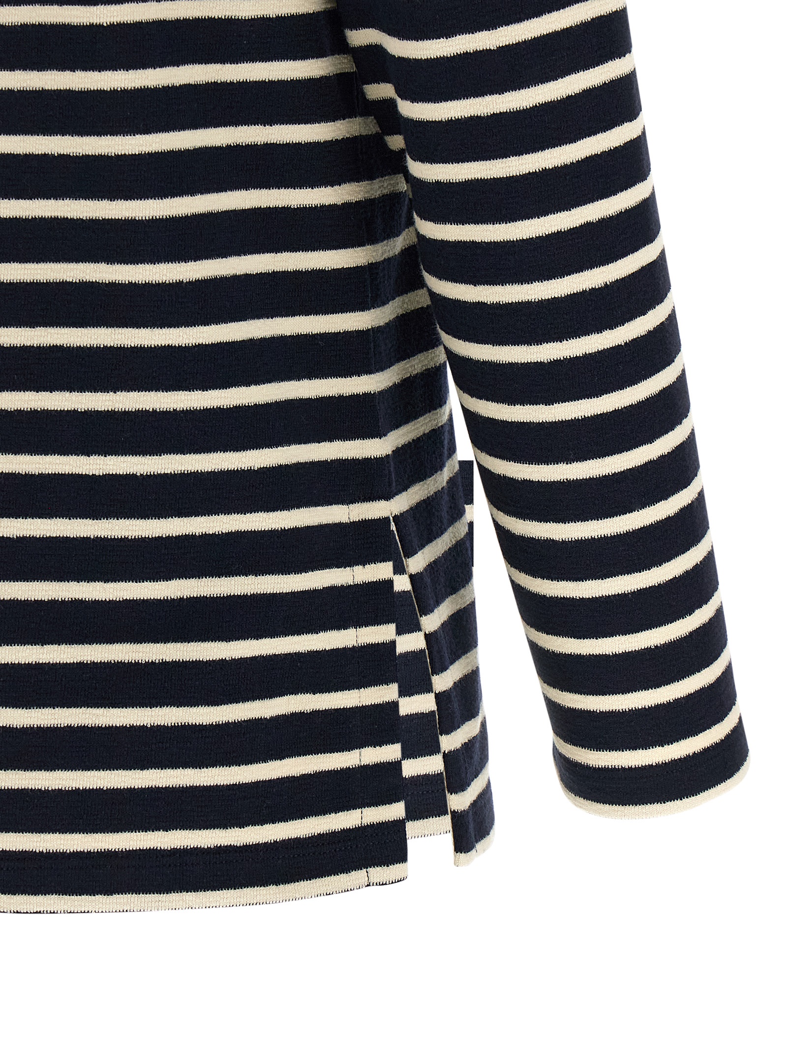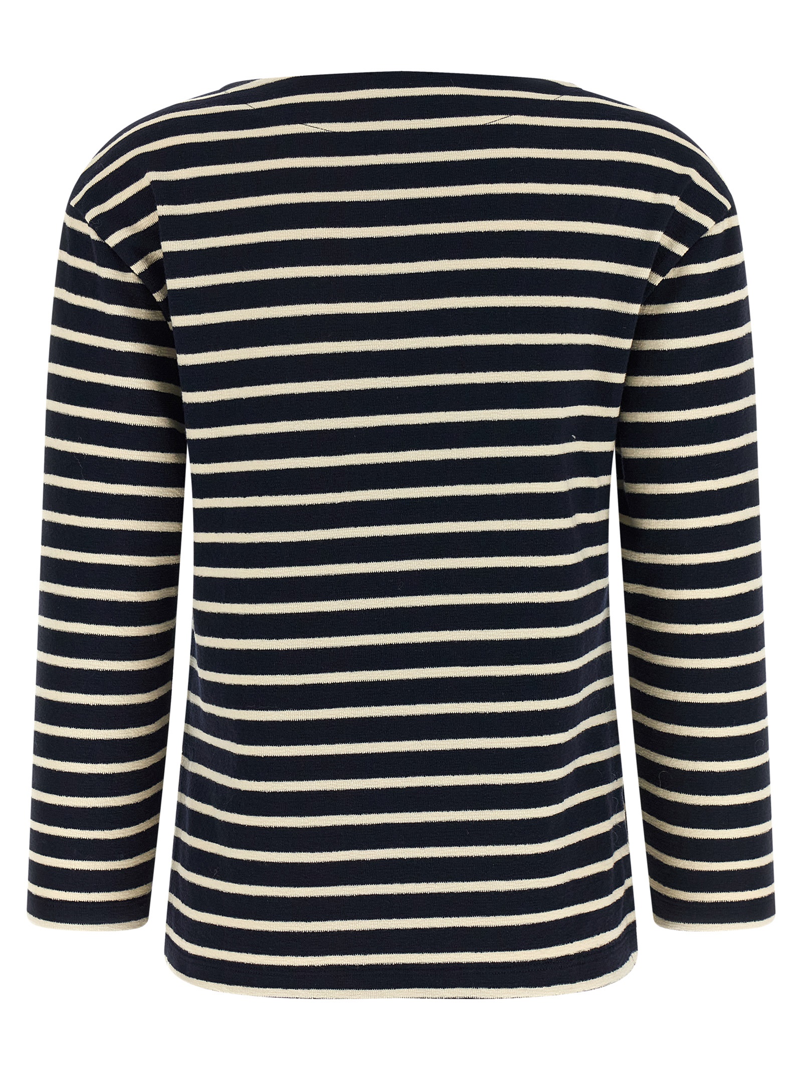 Striped cotton sweater with wide round neckline, and 3/4 sleeves.