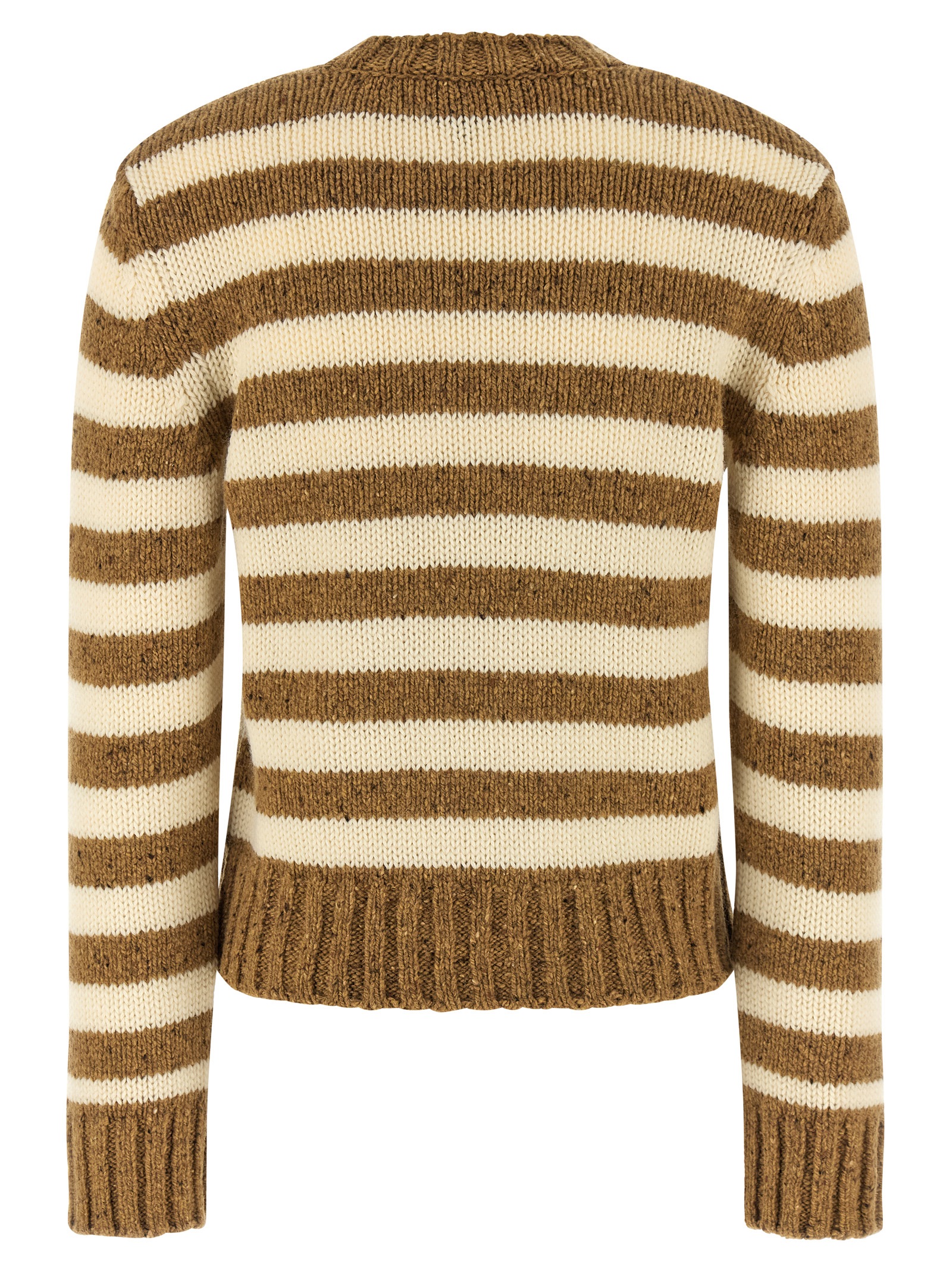 Knitted striped virgin wool sweater, crew neck, long cuffed sleeves.