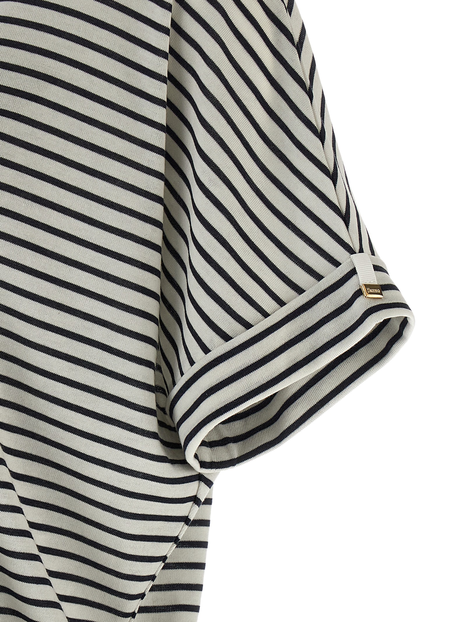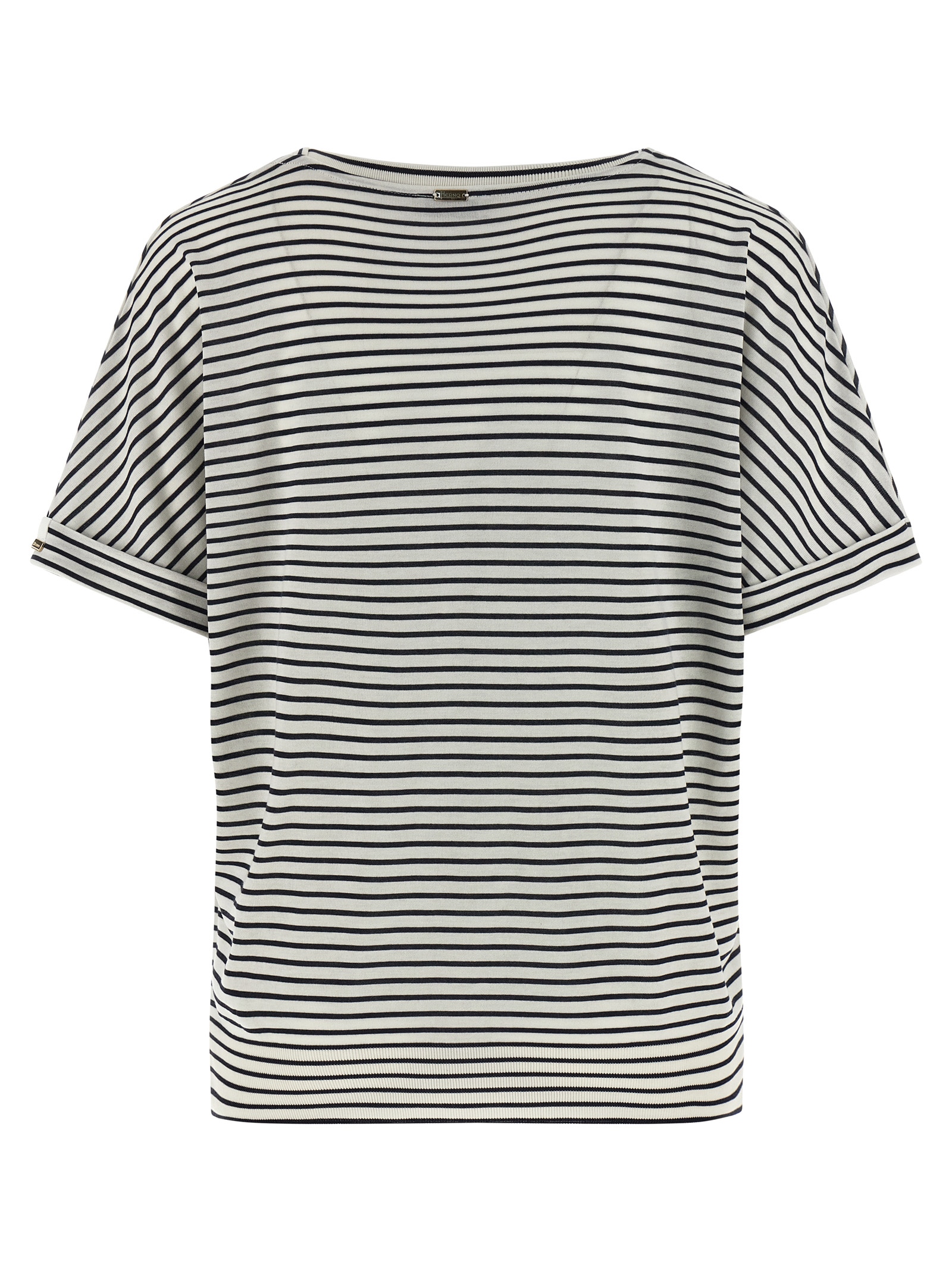 Striped lyocell and cotton blend T-shirt, with round neckline, short sleeves with turned-up cuffs, and band on the hem.