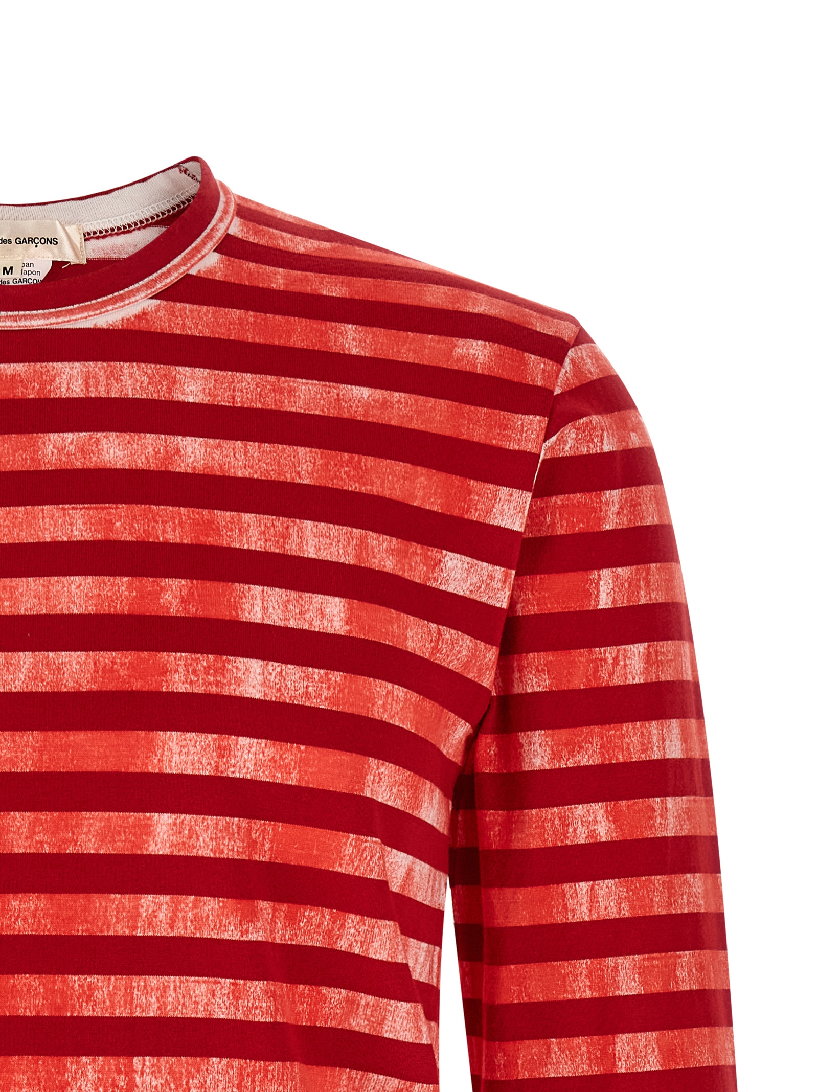 Striped cotton jersey T-shirt with overlapping watercolor effect print, crew neck, long sleeves.