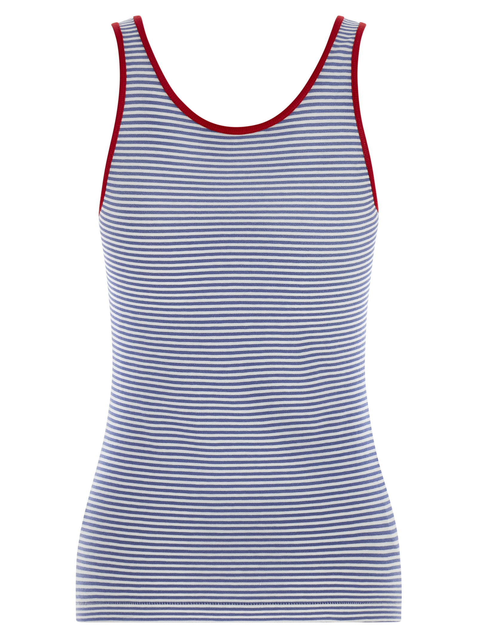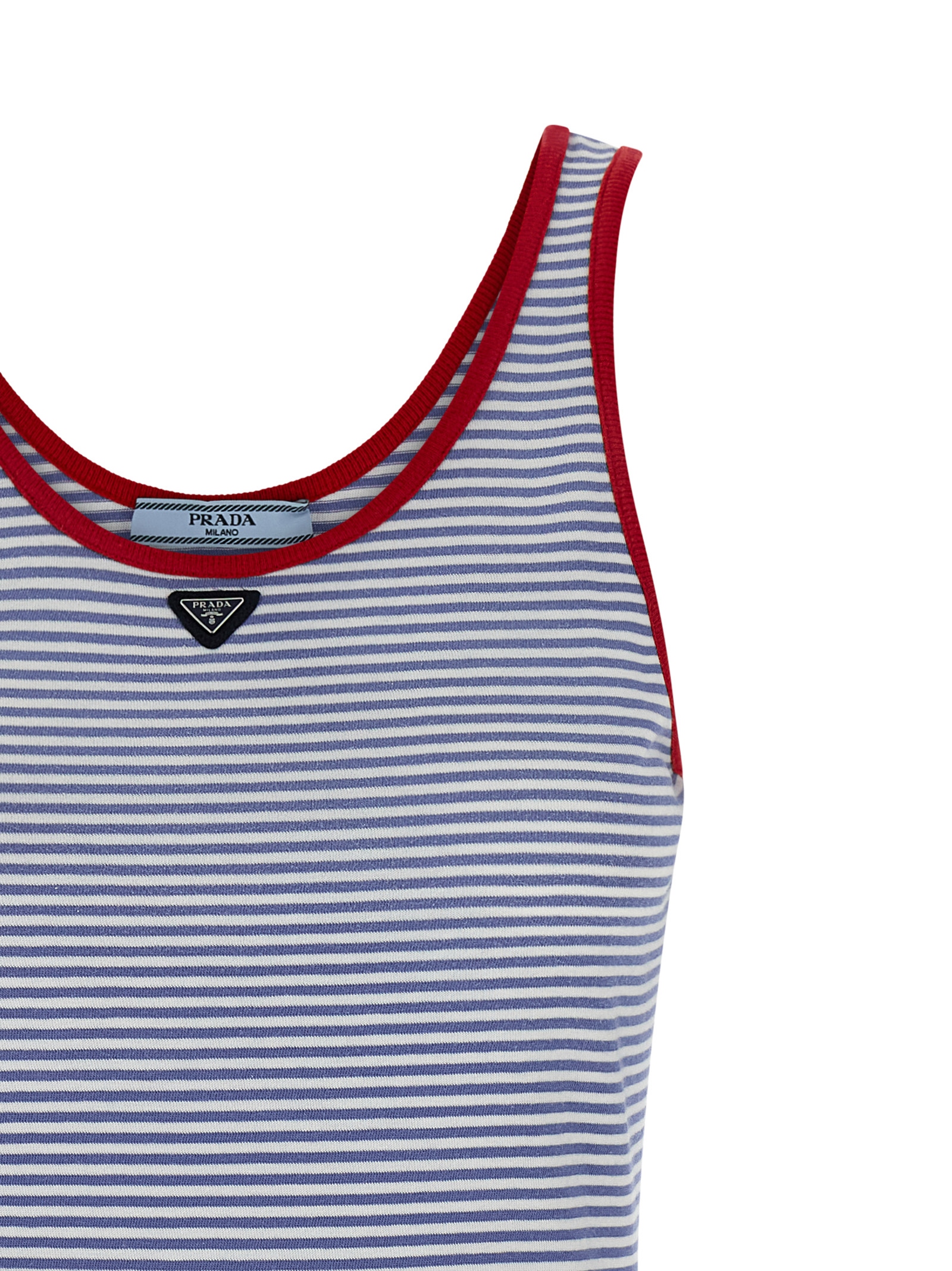 Striped cotton jersey top with contrast details, triangle metal enamel logo patch on the front, round neckline on the front and back.