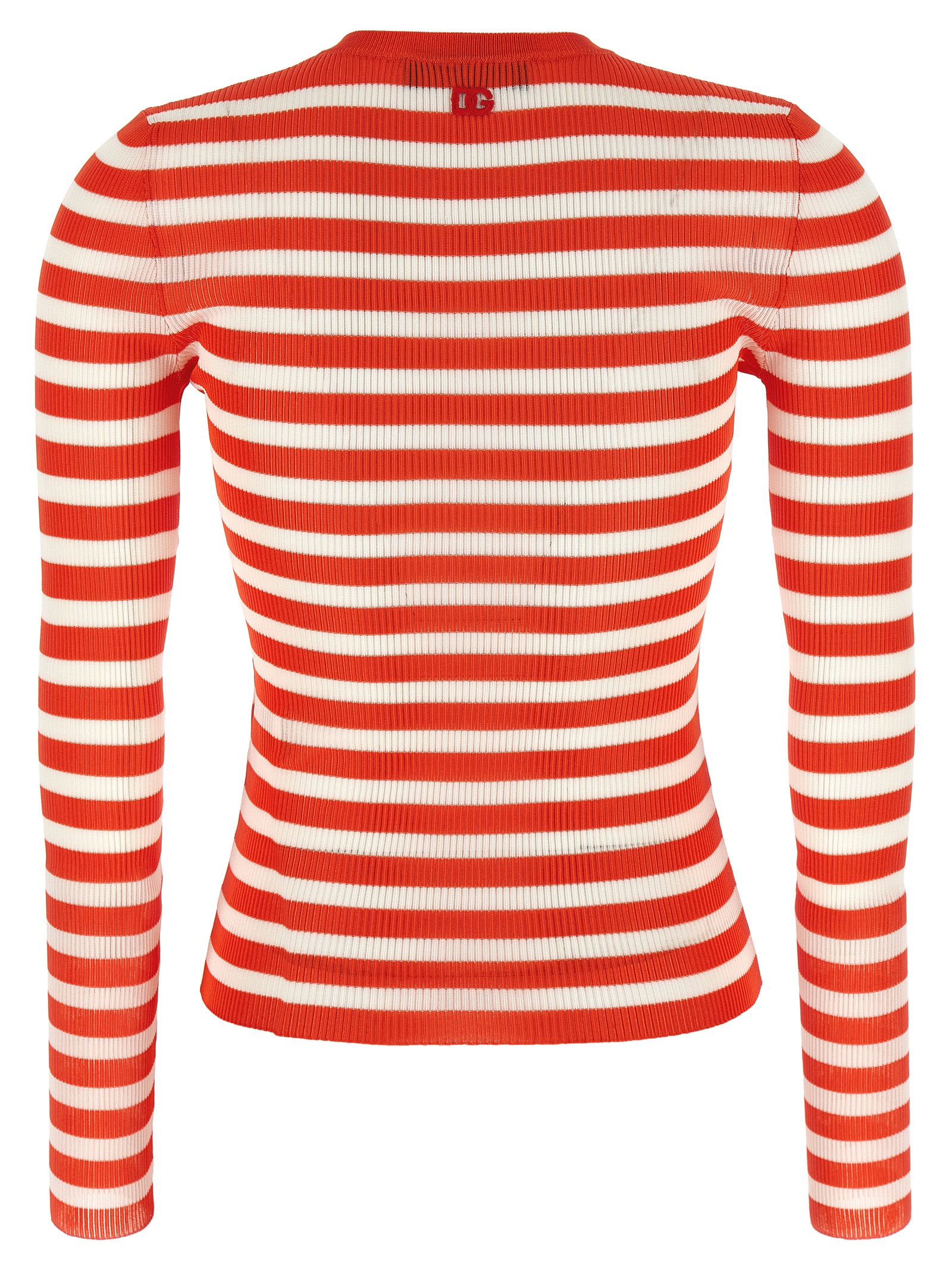 Striped stretch viscose cardigan with striped pattern, crew neck, front button closure, long sleeves.