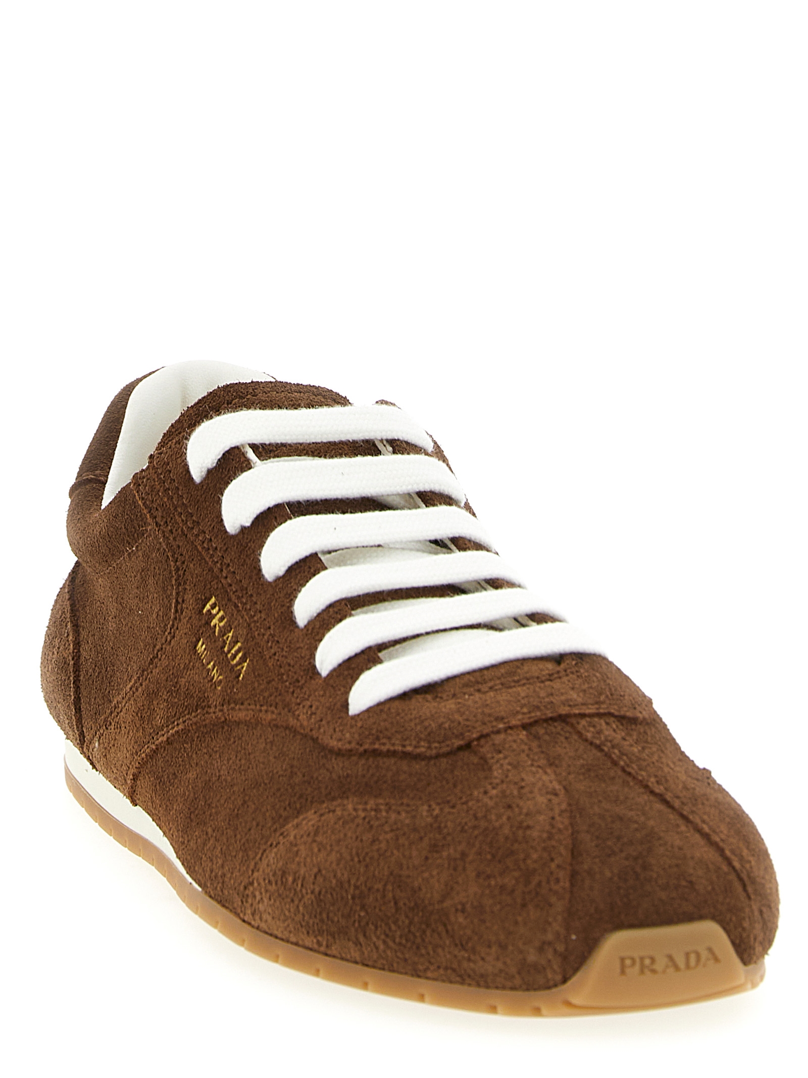 Suede sneakers, embossed logo on the side, lace-up closure, leather-covered removable insole, rubber sole.
