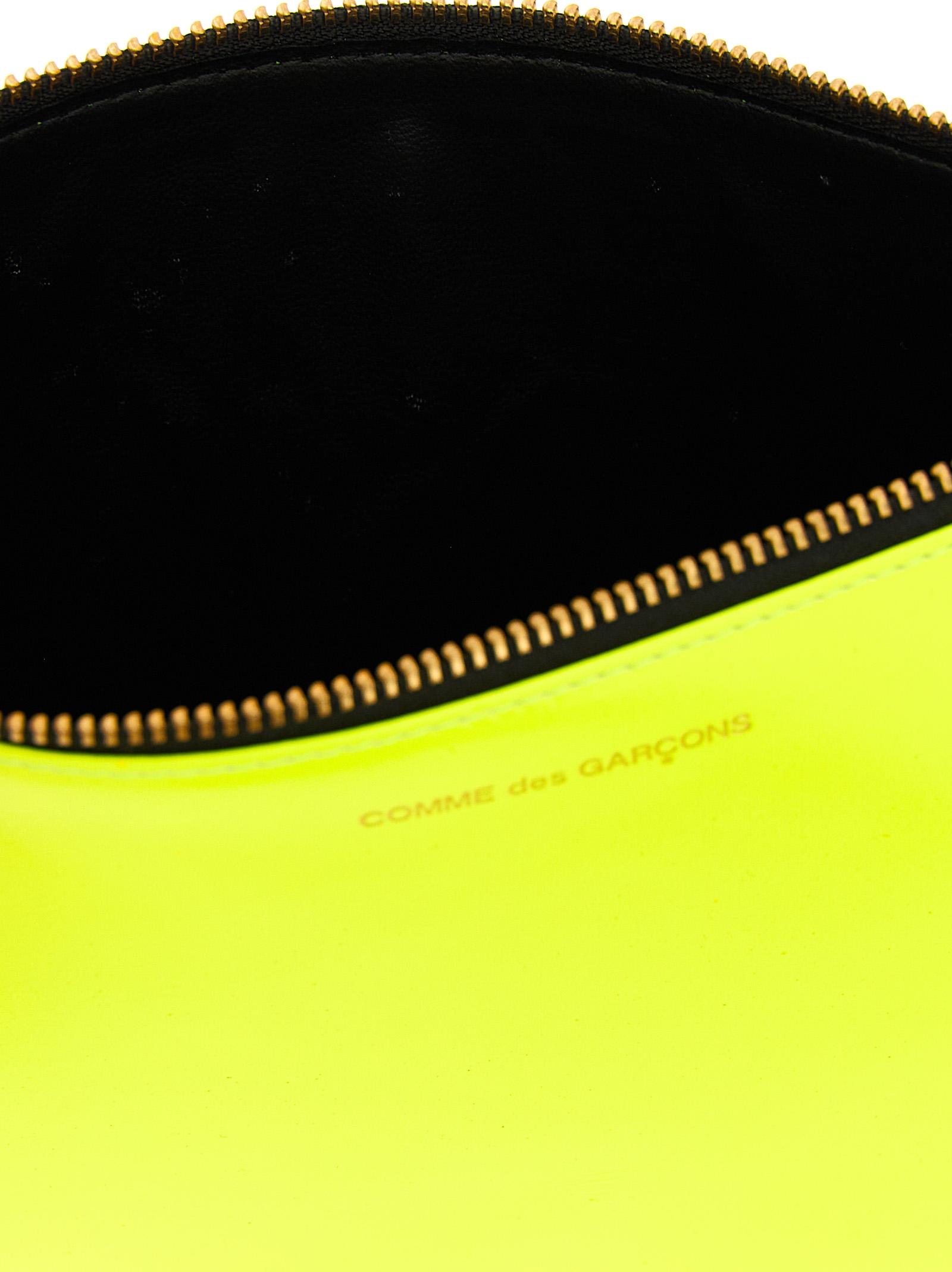 ‘Super Fluo’ leather wallet, front embossed logo, top zip closure.