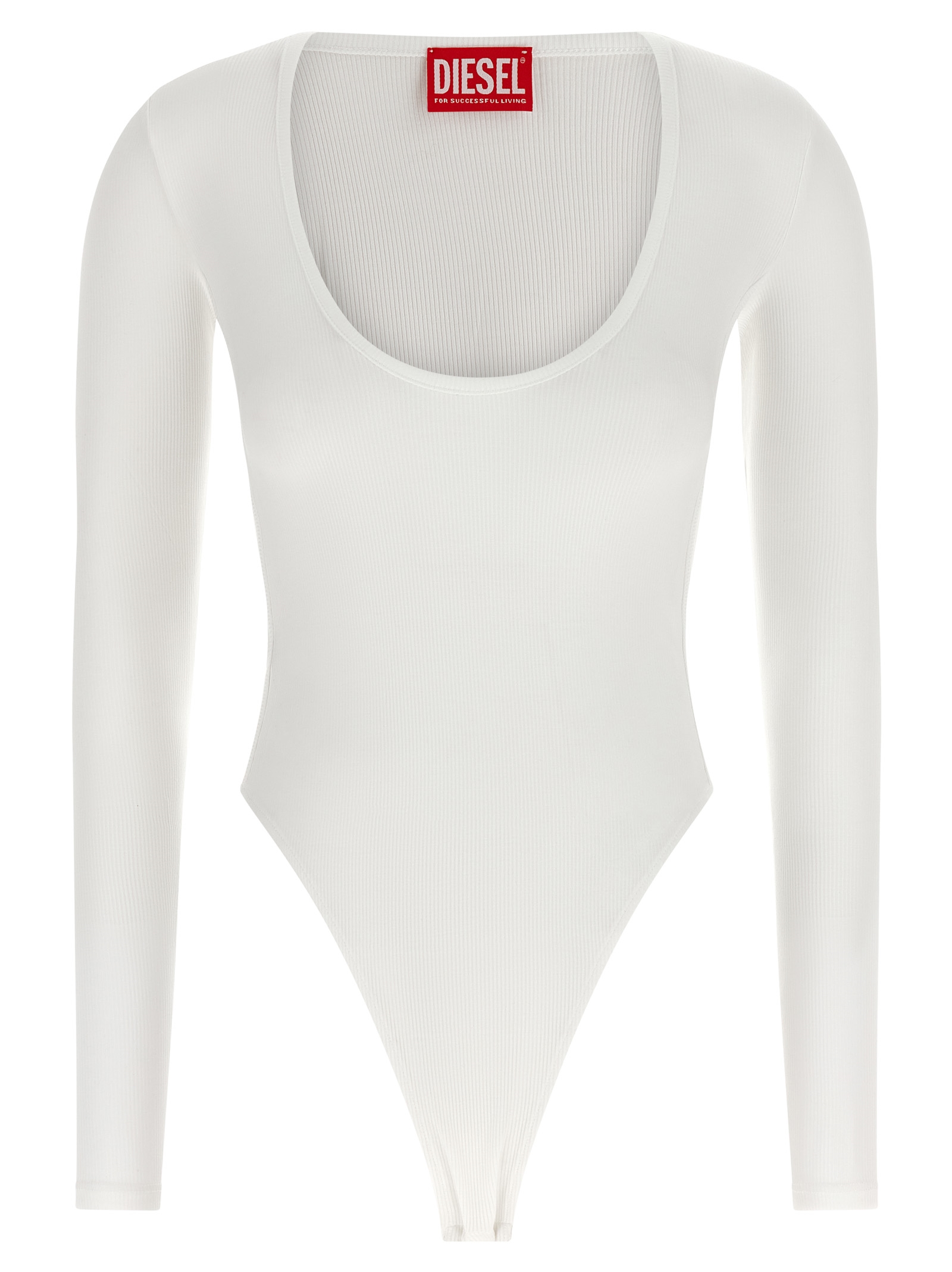 ‘T-Bodyn’ bodysuit in ECOVERO™ stretch viscose blend, side logo patch, wide round neckline on the front, long sleeves, thong cover with high leg, snap buttons on the hem.