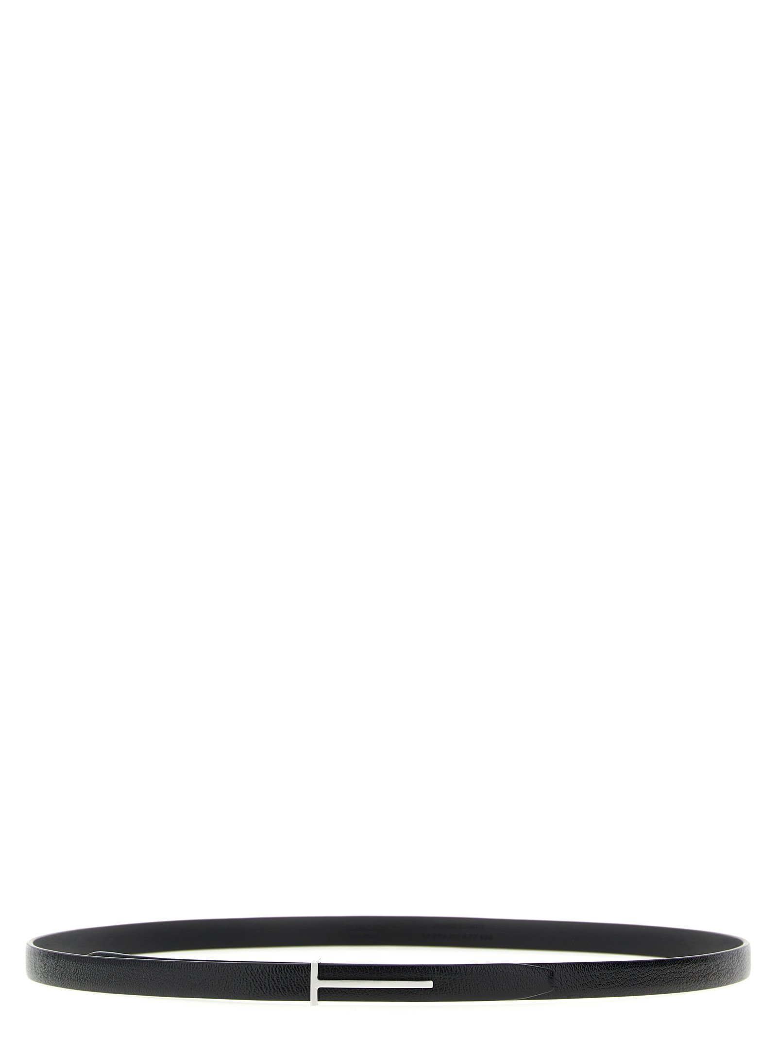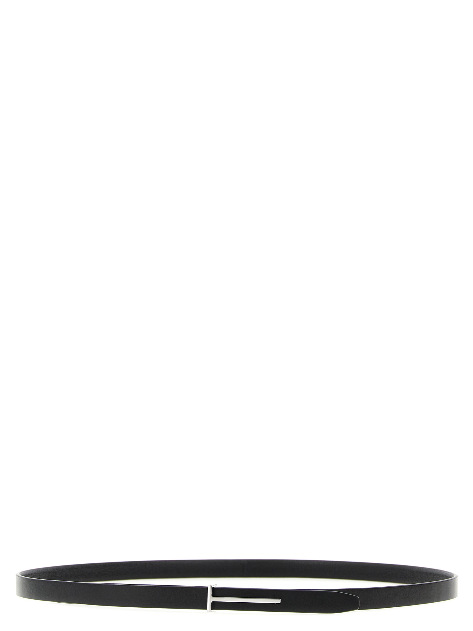 Thin full-grain leather belt, metal ‘T’ logo buckle.