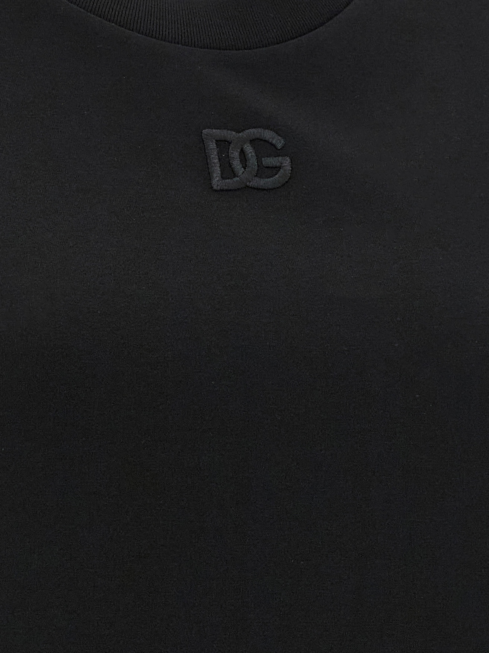 Cotton jersey T-shirt with tone-on-tone logo embroidery on the front, crew neck, sleeveless, triangle silk scarf with ‘Bouquet’ print fixed on the neckline with buttons and removable.