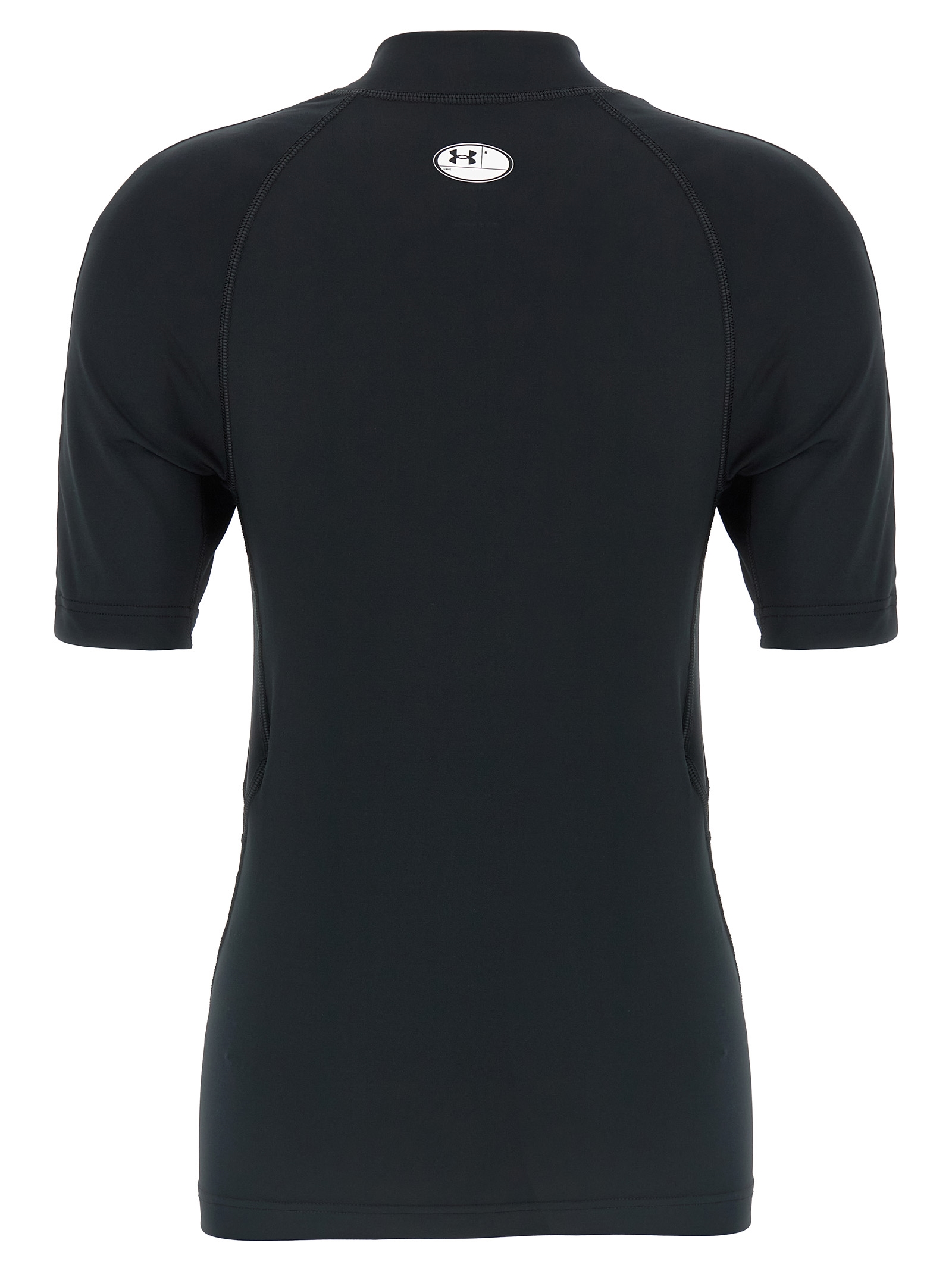 Under Armour® T-shirt in light spandex with logo print on the front and back, mock collar, and short sleeves.