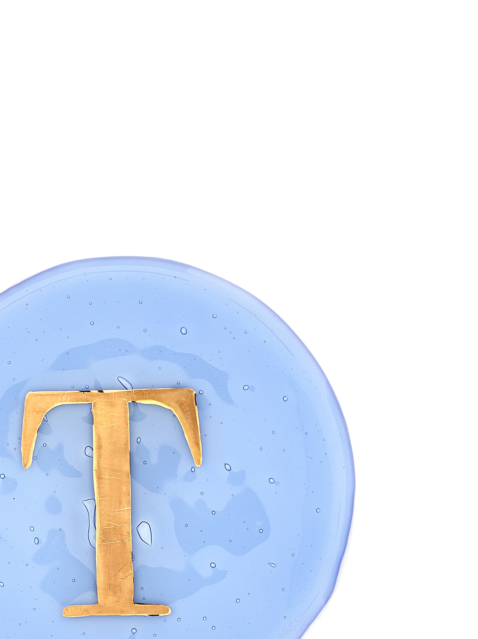 Glass valet tray with hand-painted ‘T’ initial in pure gold.