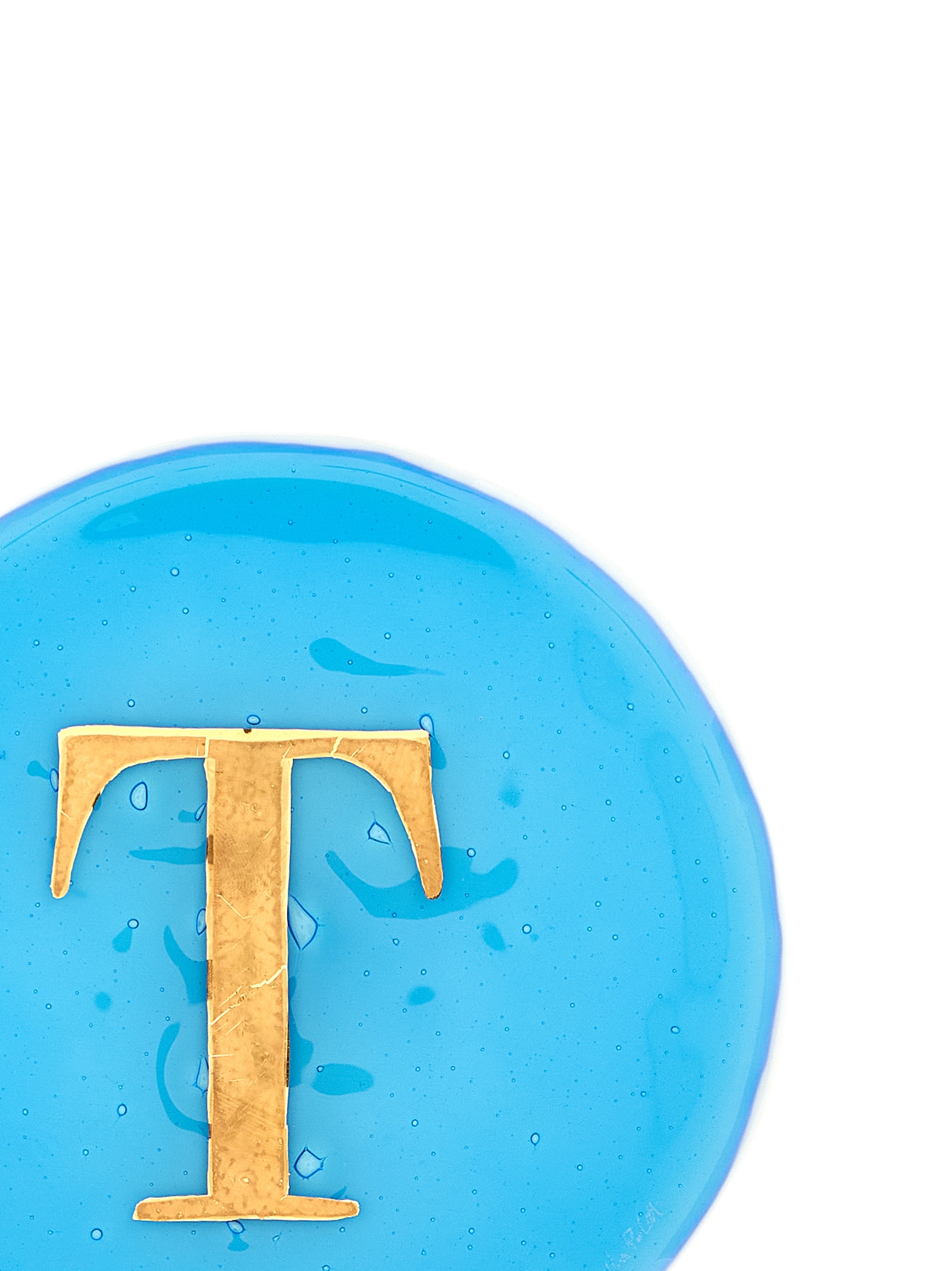 Glass valet tray with hand-painted ‘T’ initial in pure gold.