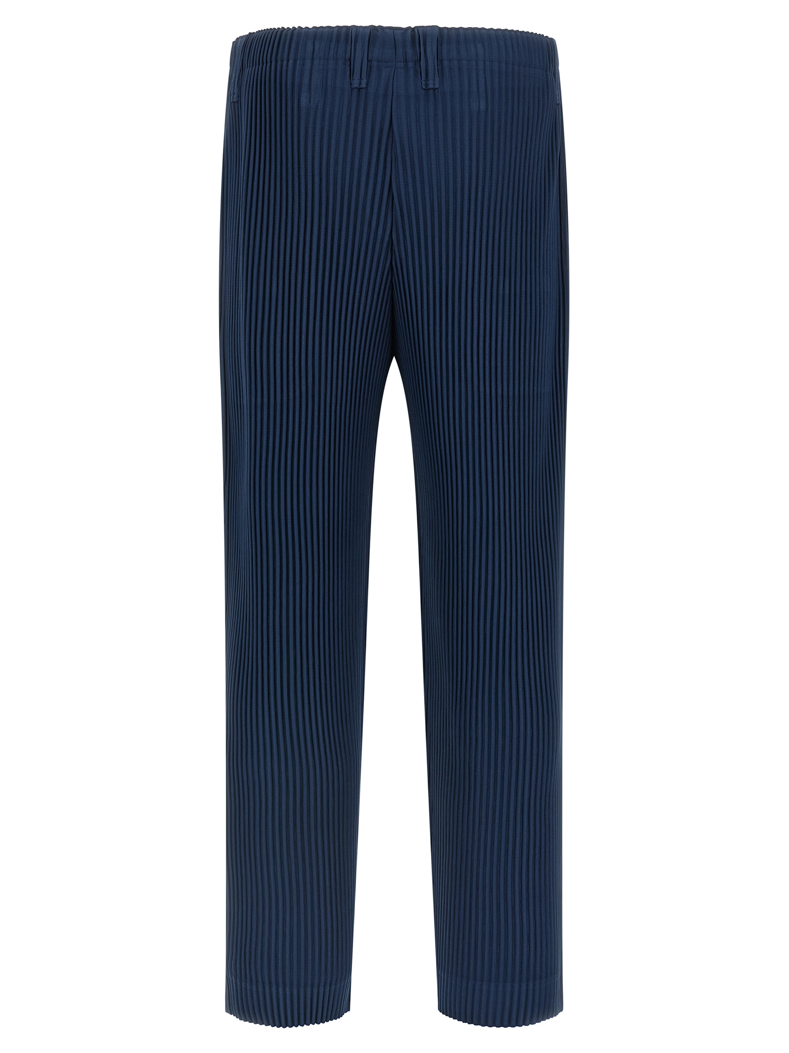 ‘Tailored Pleats 1’ pleated fabric pants, elastic waistband, flap with buttons, pockets.