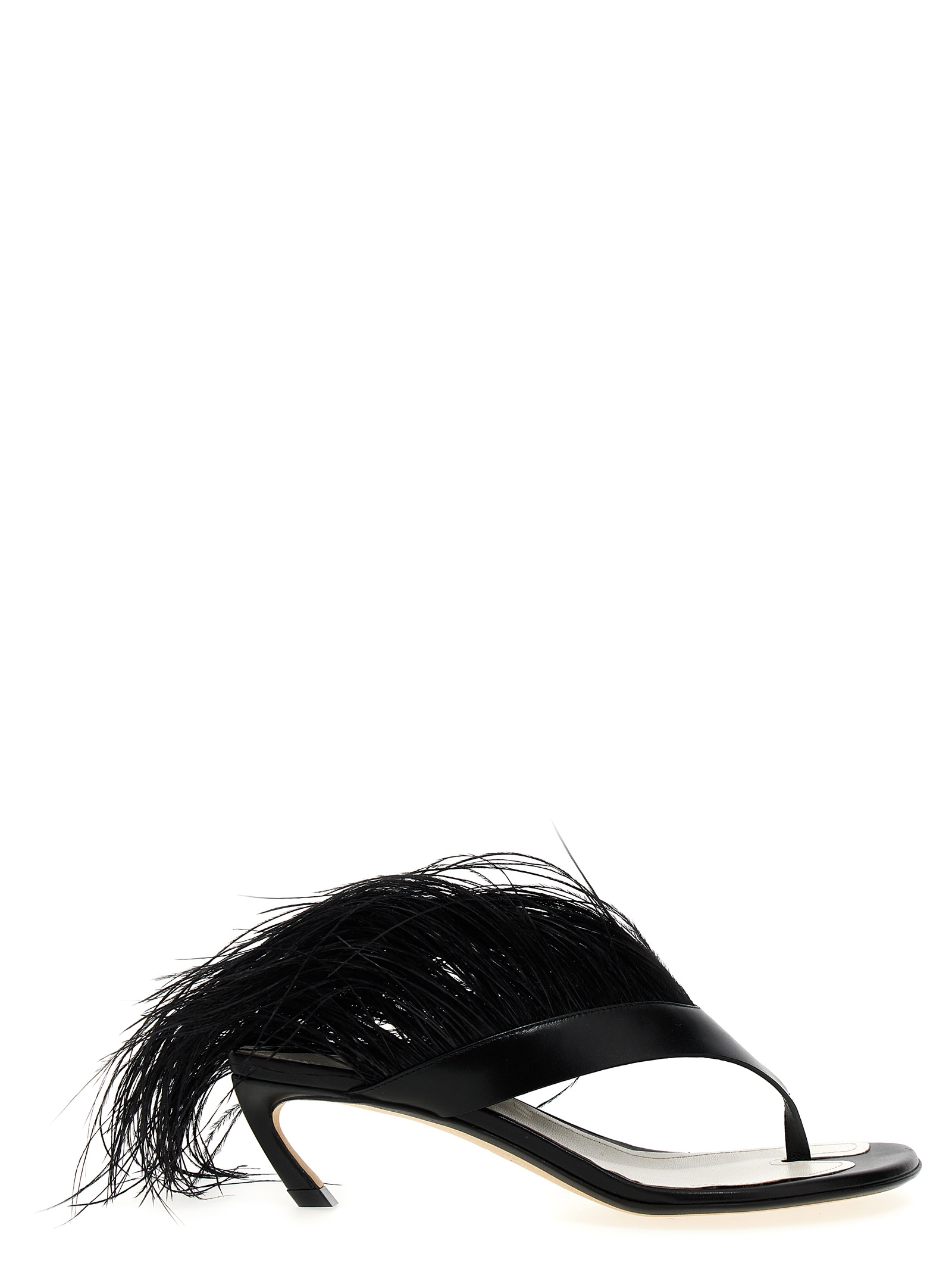 Talon swing’ leather sandals featuring thong style embellished with tone-on-tone feathers.
