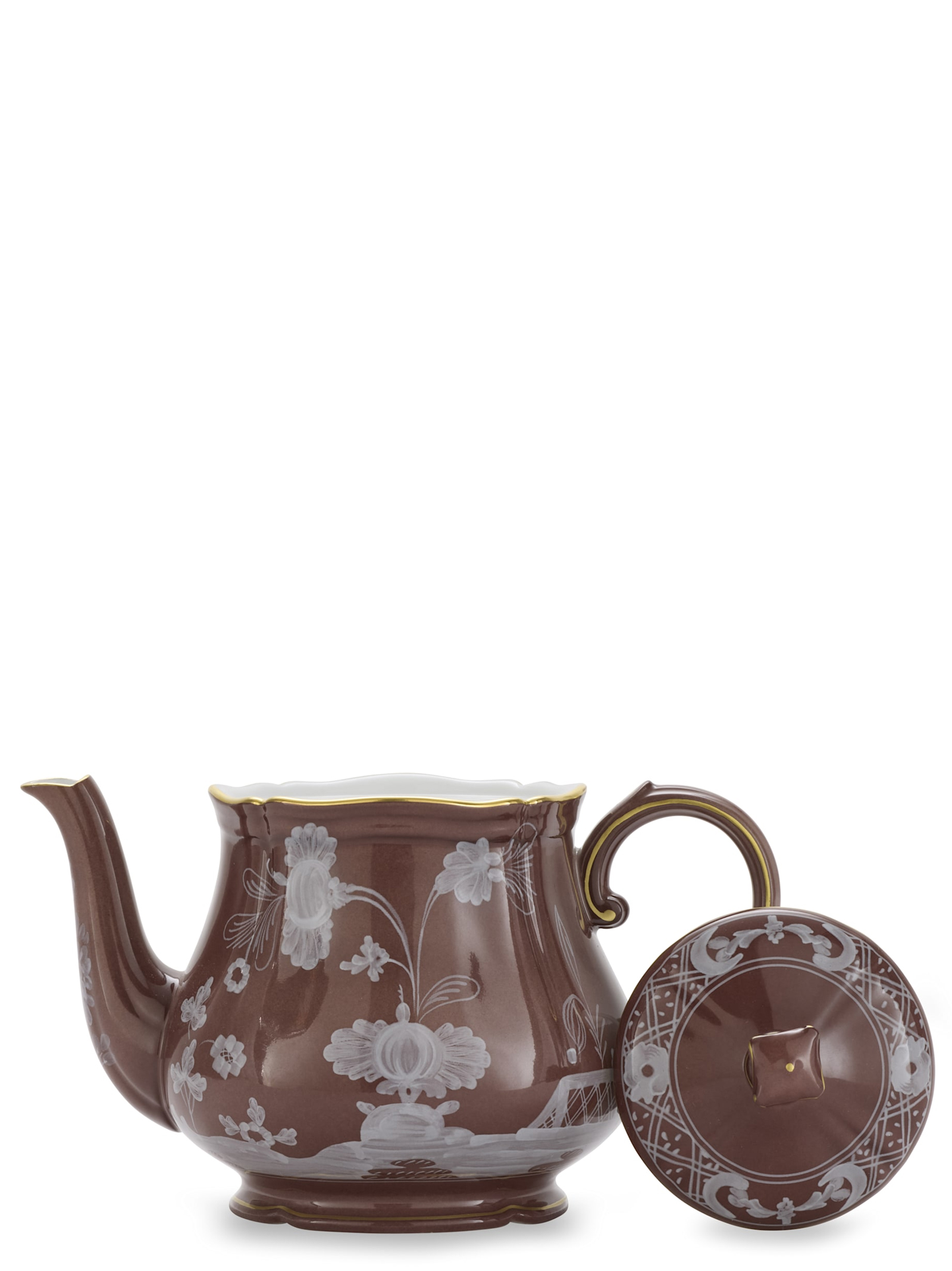 Porcelain teapot with Chestnut decoration and gold thread. ‘Oriente Italiano’ collection.