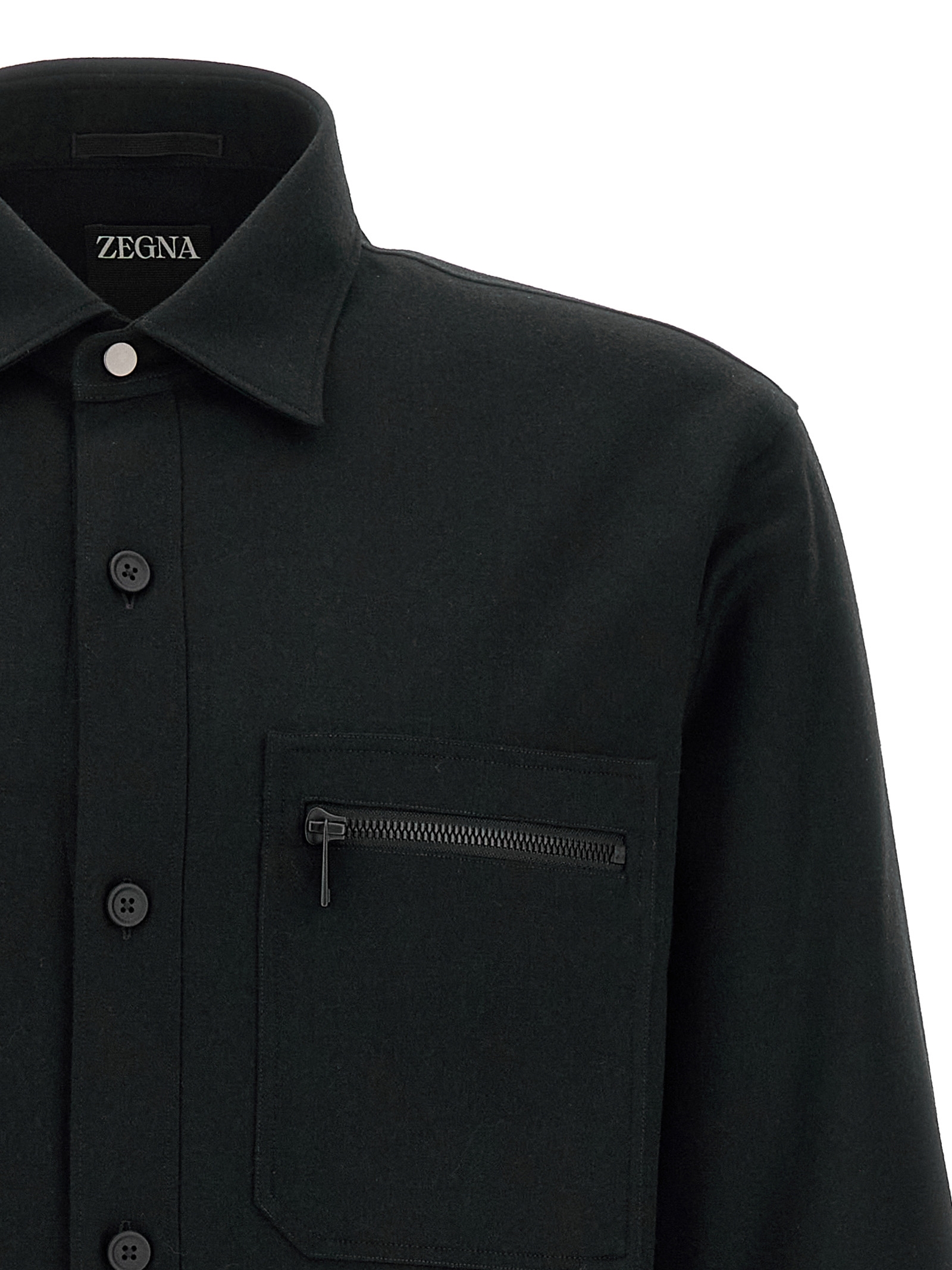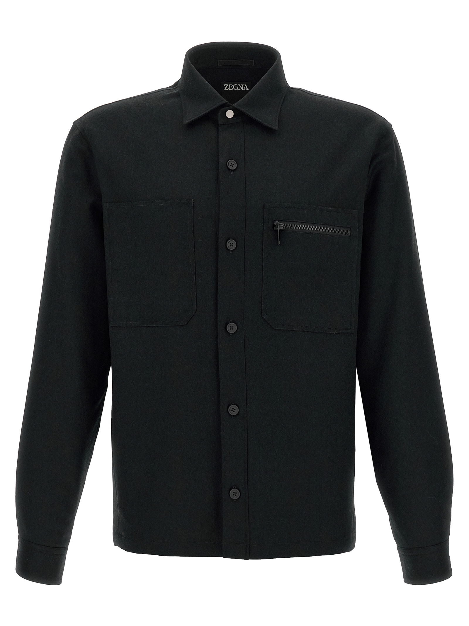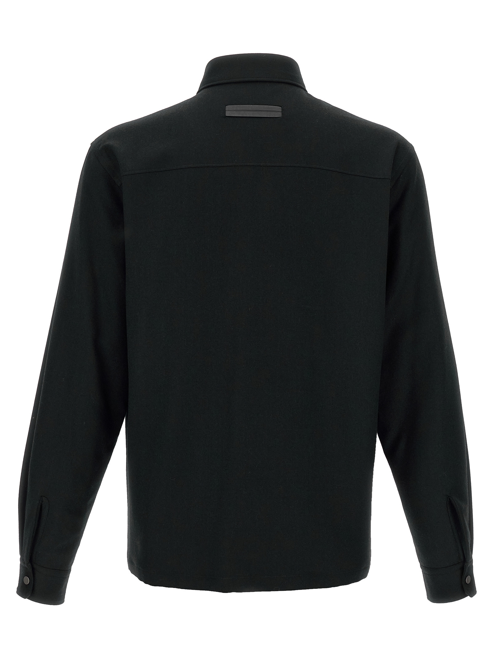 Lightly padded techmerino overshirt, front button closure, pockets, long cuffed sleeves.