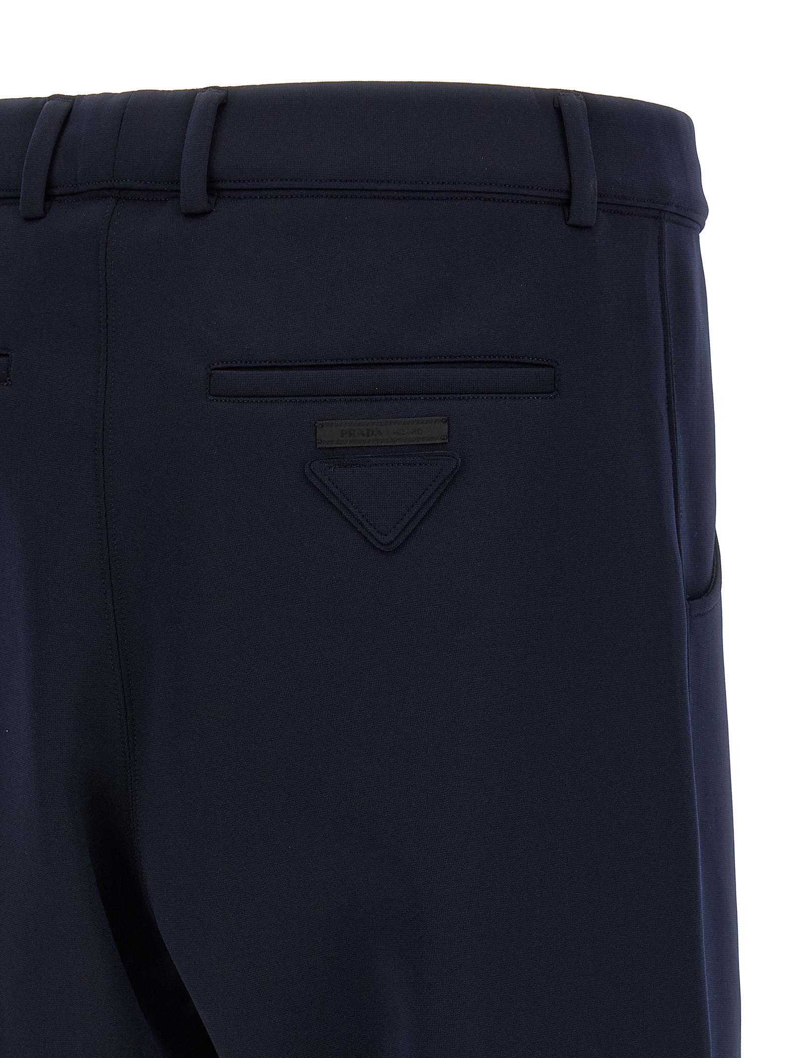 Techno jersey trousers, tone-on-tone fabric triangle logo on the back, elastic waistband, straight leg, pockets.