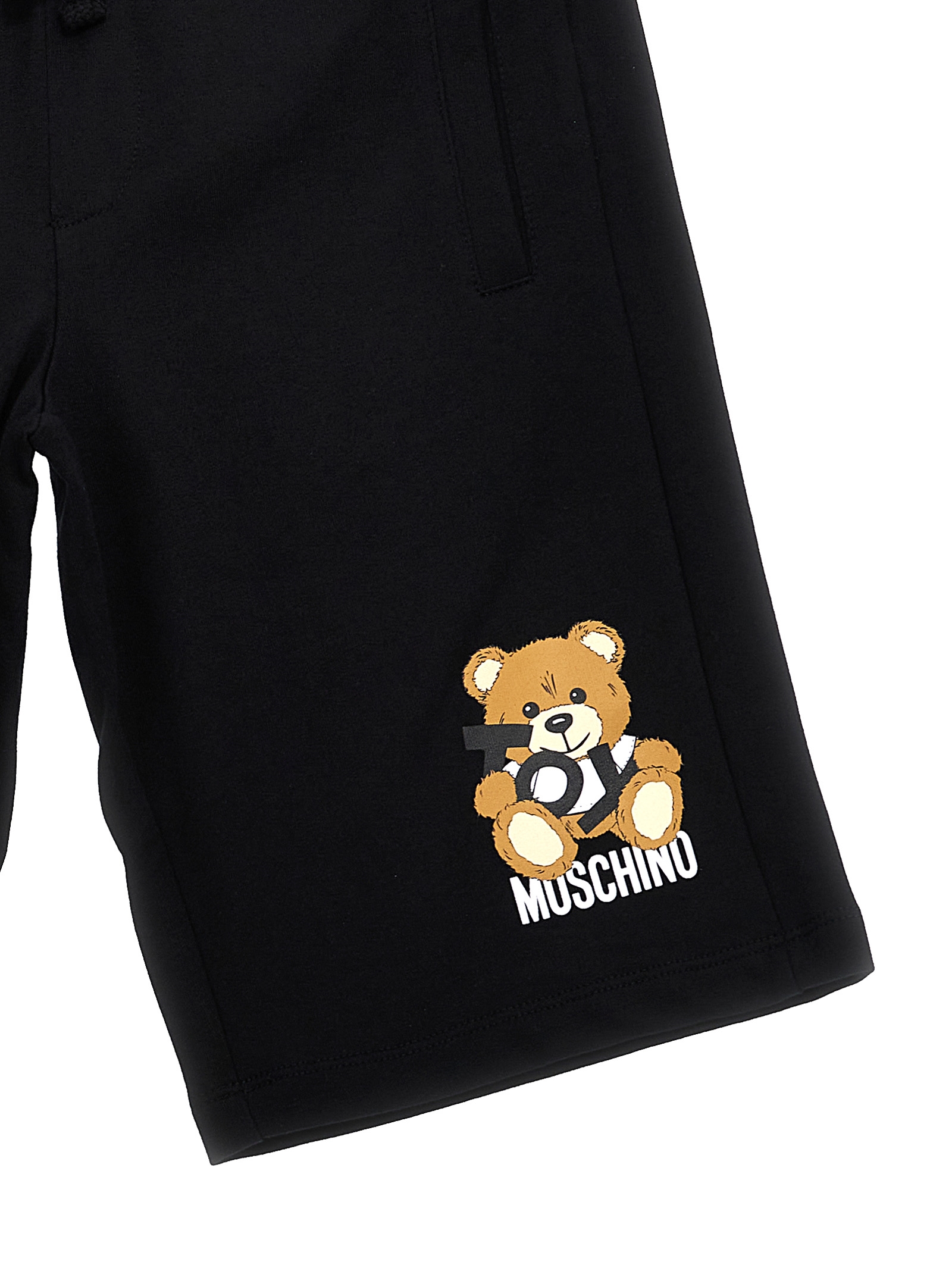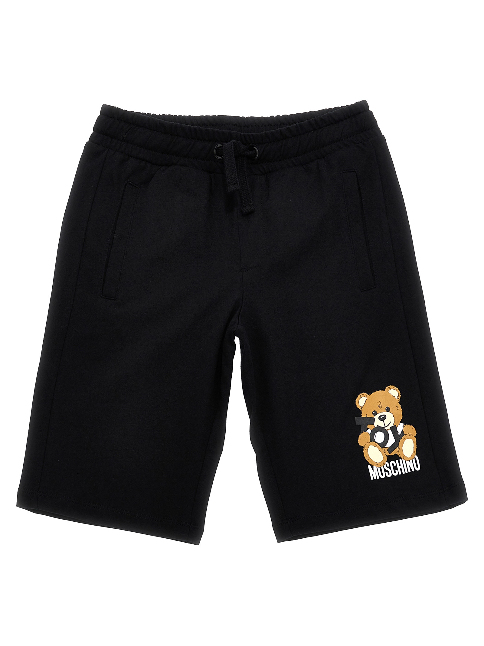 Cotton bermuda shorts with front ‘Teddy’ print, adjustable drawstring elastic waistband, pockets.