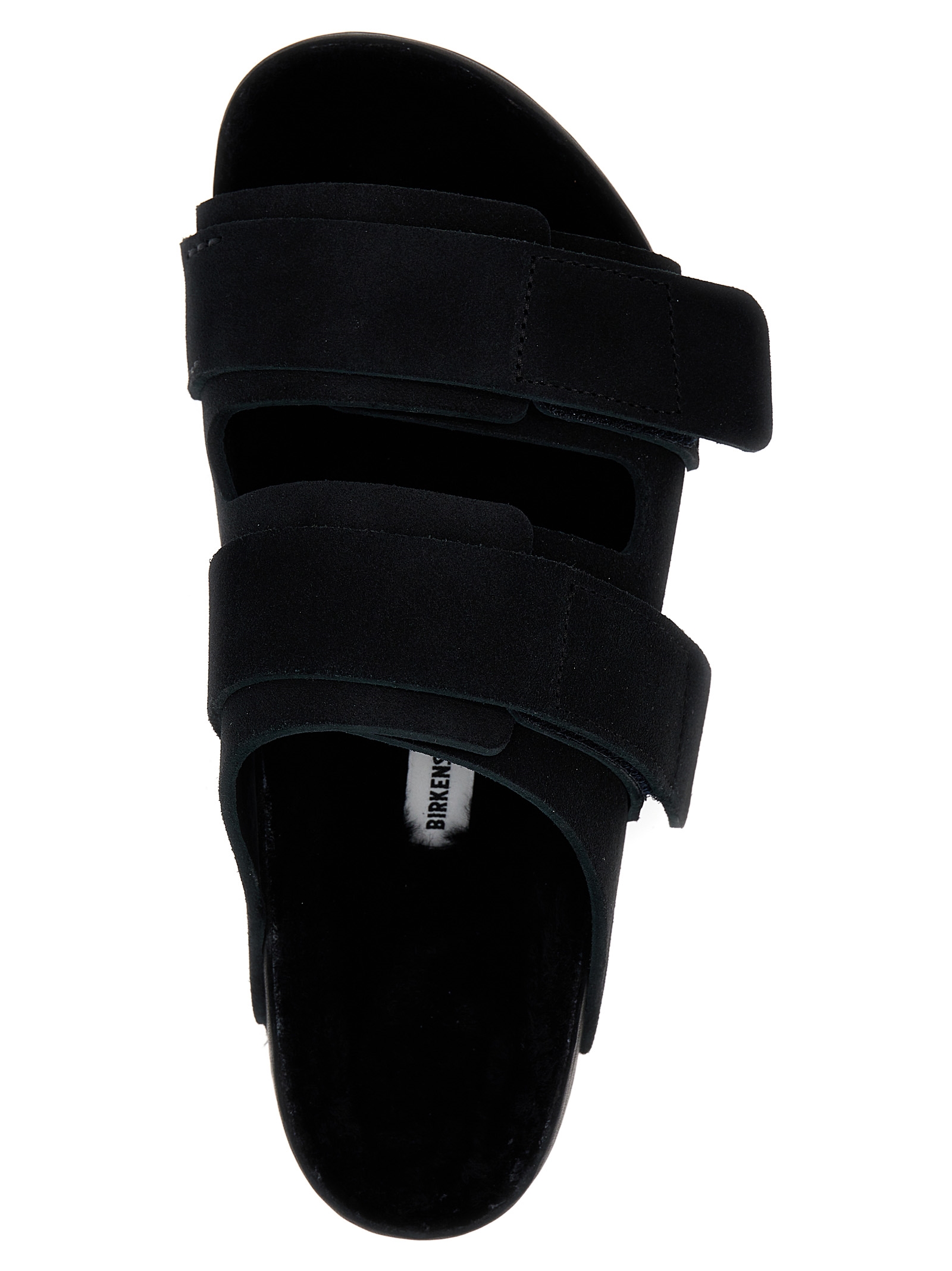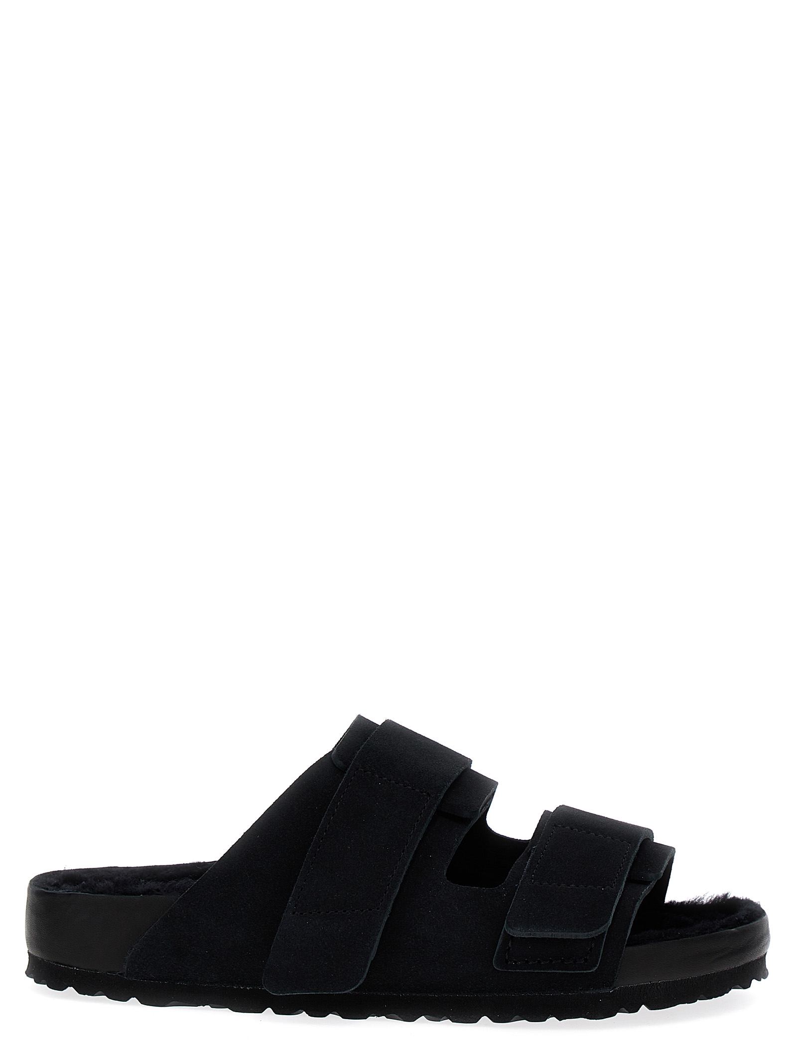 Tekla x Birkenstock 1774 suede ‘Uji’ sandals, double adjustable velcro band, fur insole, rubber sole.