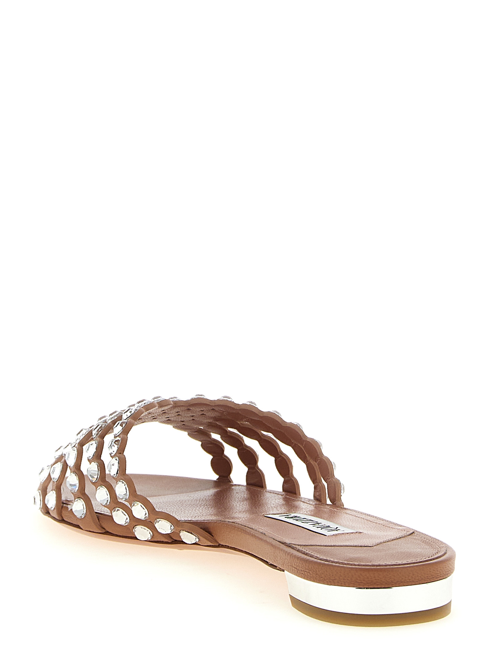 ‘Tequila’ smooth nappa leather slides with crystals on the toe strips, leather sole with rubber heel.