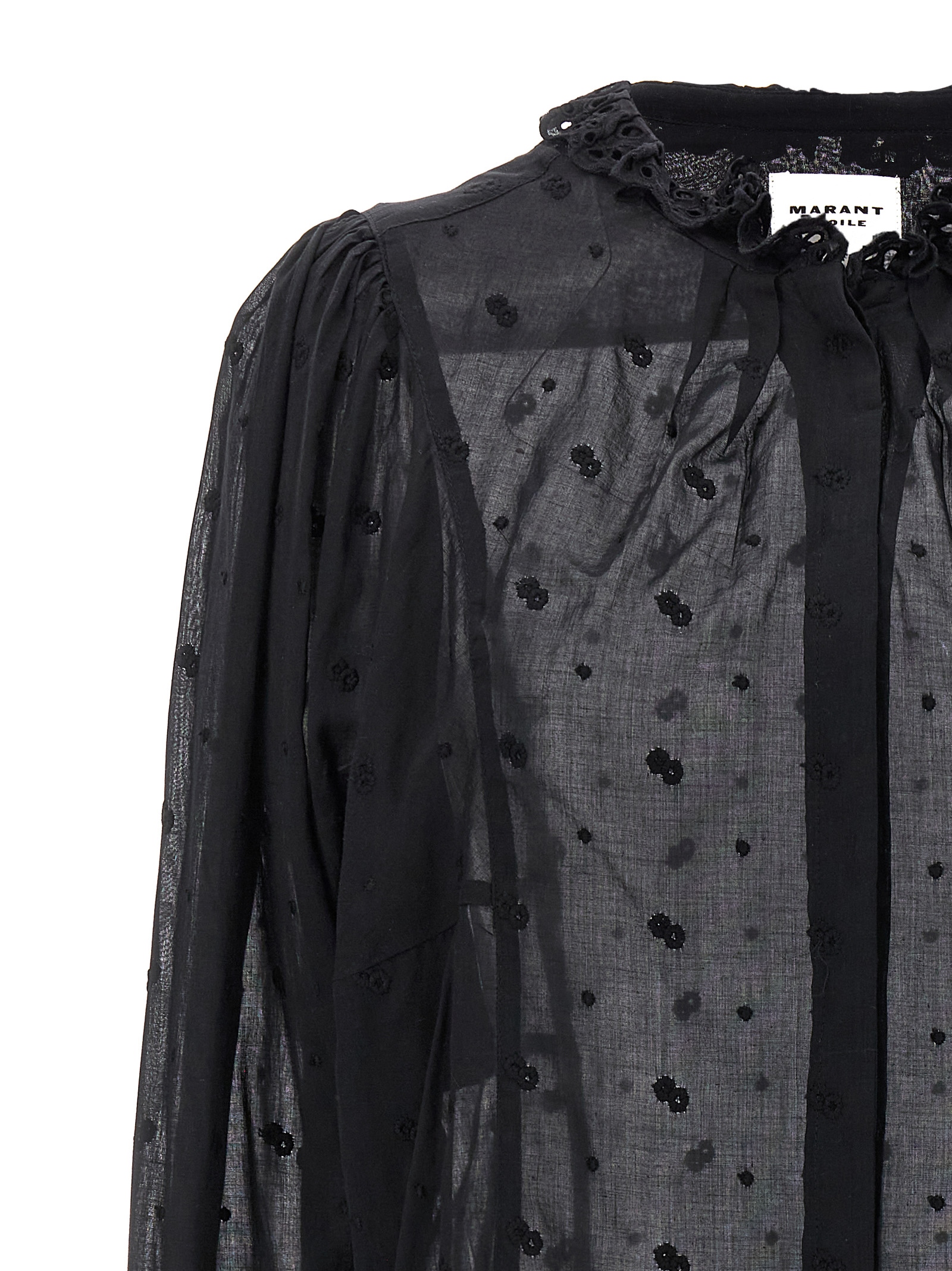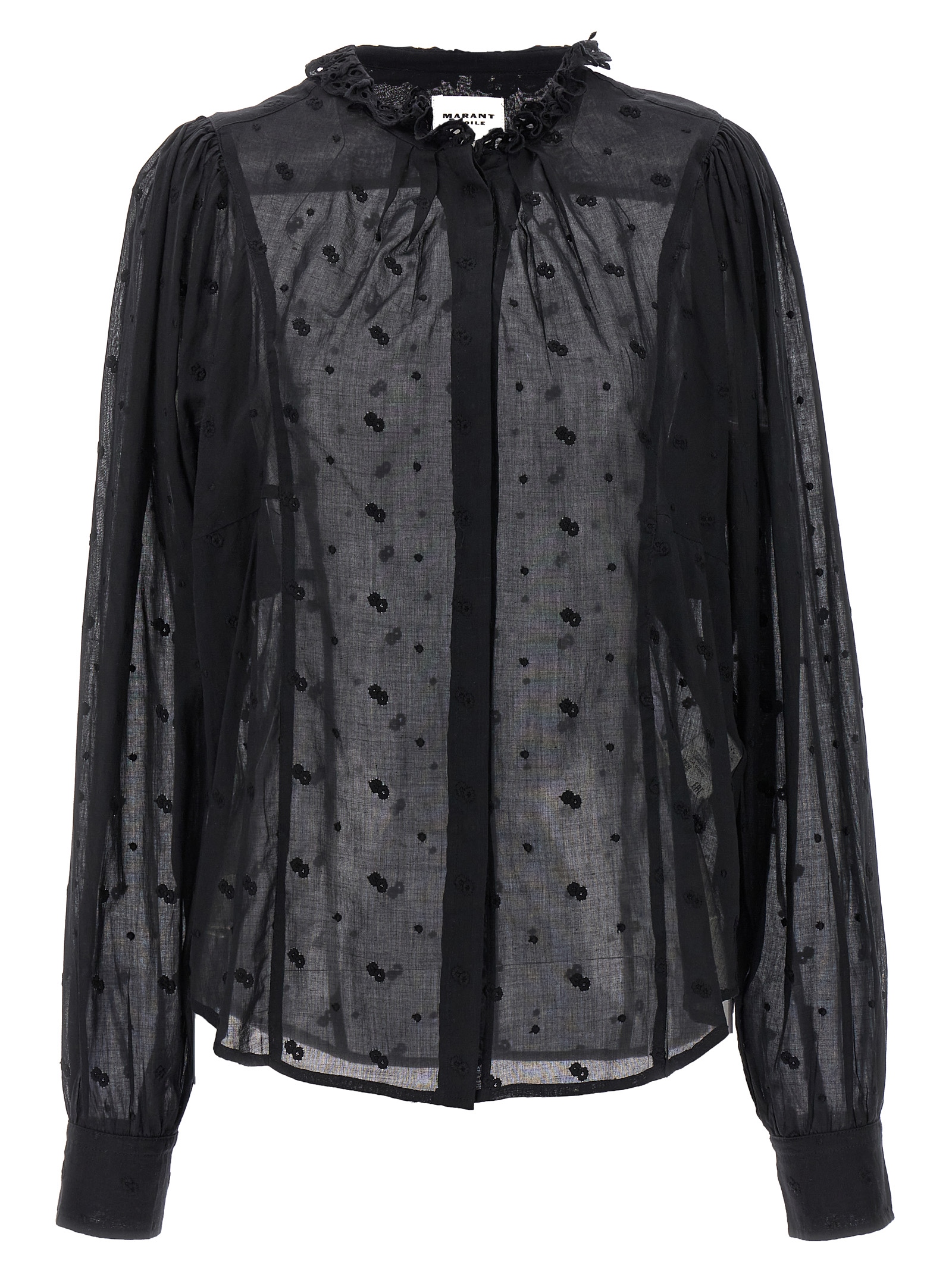 ‘Terzali’ cotton shirt with all-over embroidery, button closure, long cuffed sleeves.