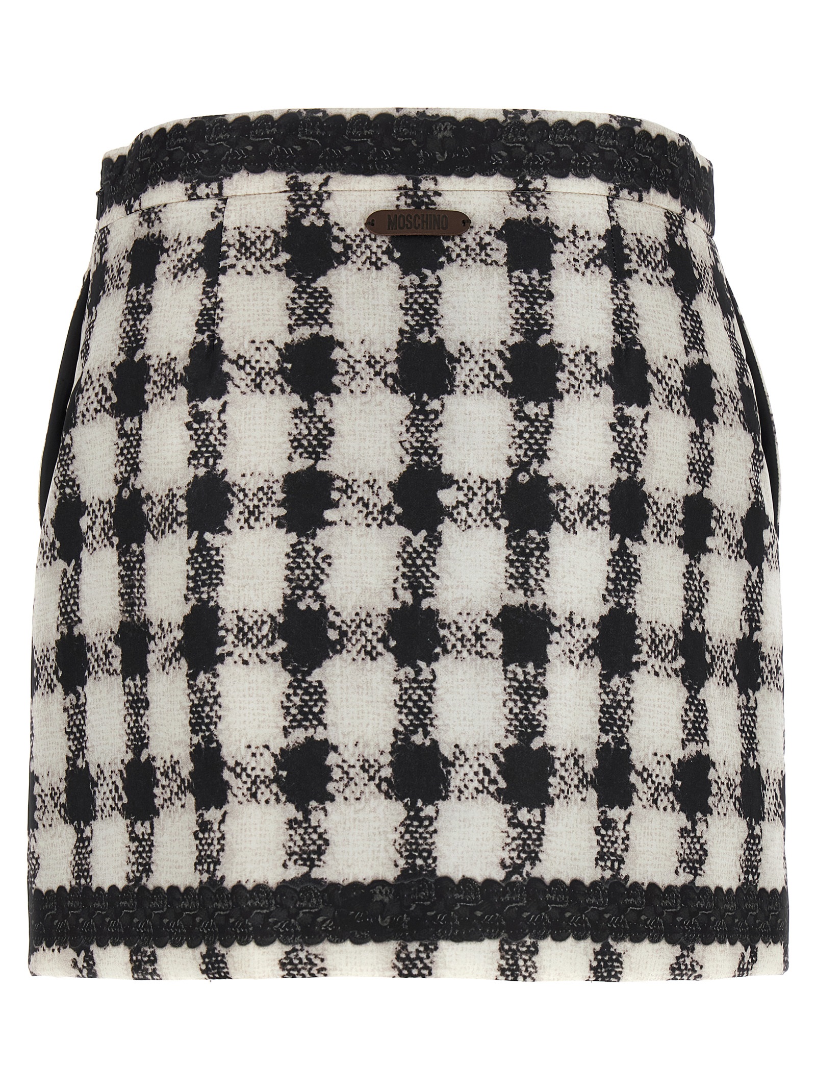 Mini skirt with all-over ‘Texture’ print, slightly padded, side zip and hook closure, pockets.